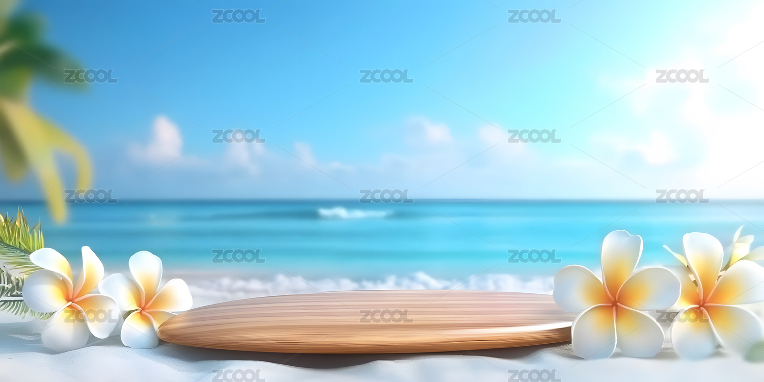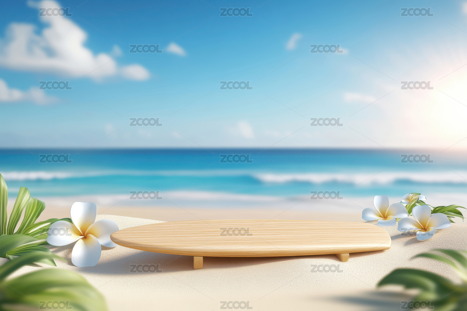 3D渲染夏日热带沙滩海洋风格产品展台背景
