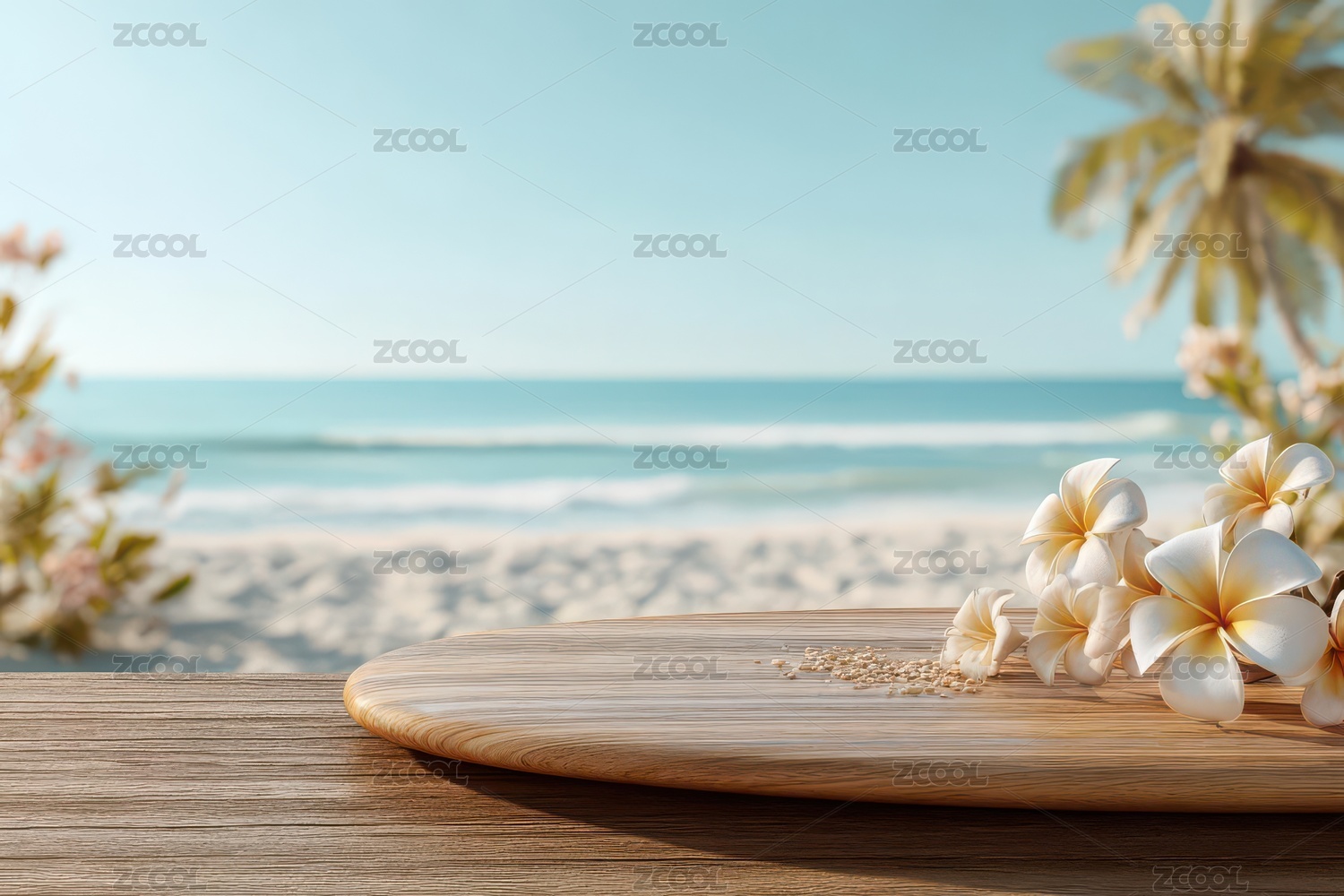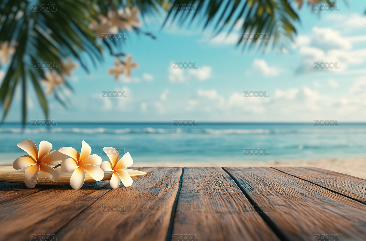花瓣,自然,木桌,沙滩,阳光,海浪,鸡蛋花,蓝天,海岸,棕榈叶