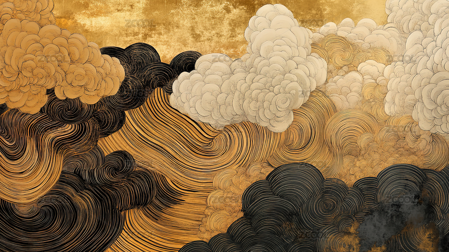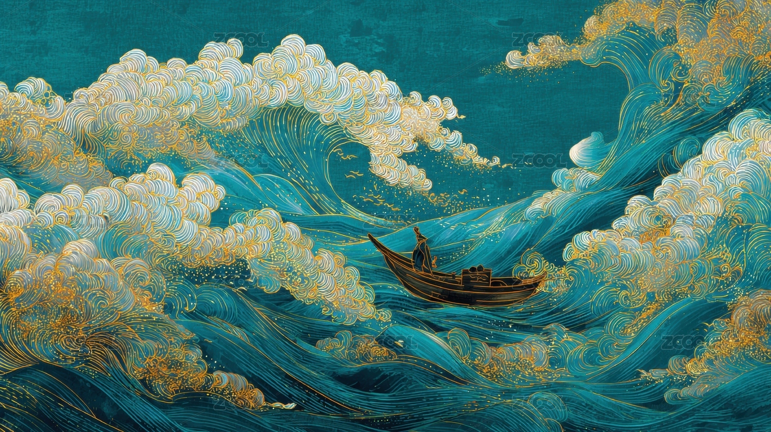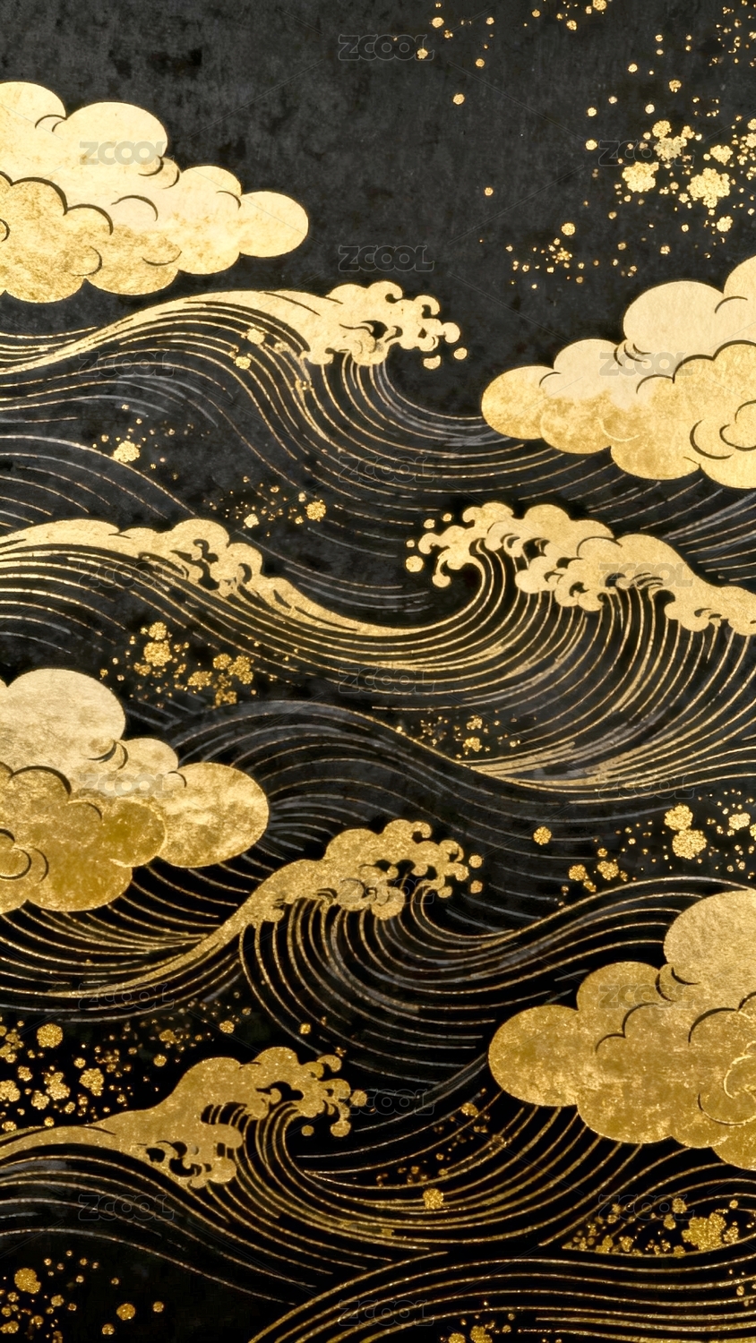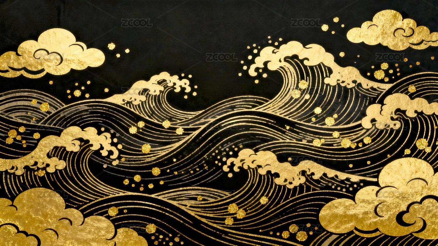 装饰,海浪,纹理,金色,线条,云纹,波涛,深蓝,漩涡,浪花