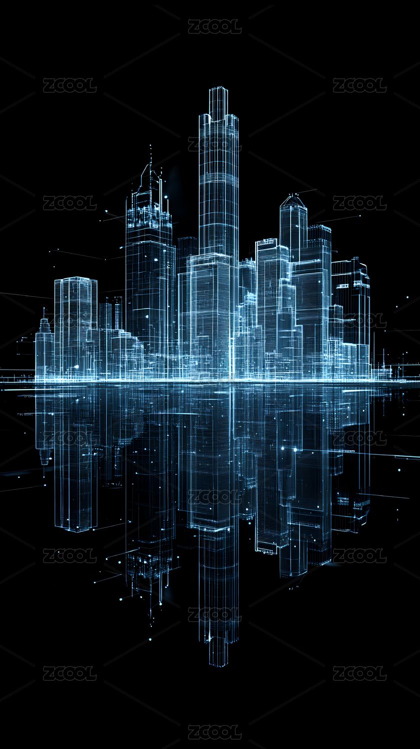 数字化城市天际线的科技艺术表现