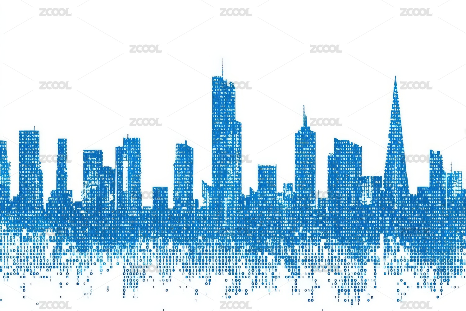 城市轮廓由二进制代码构成的数字化天际线