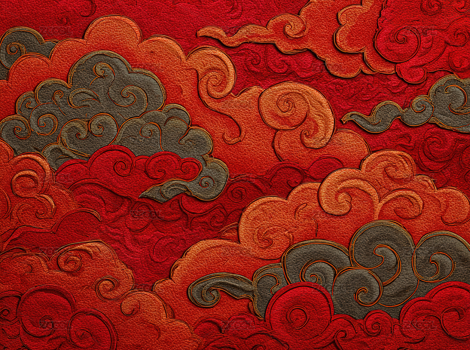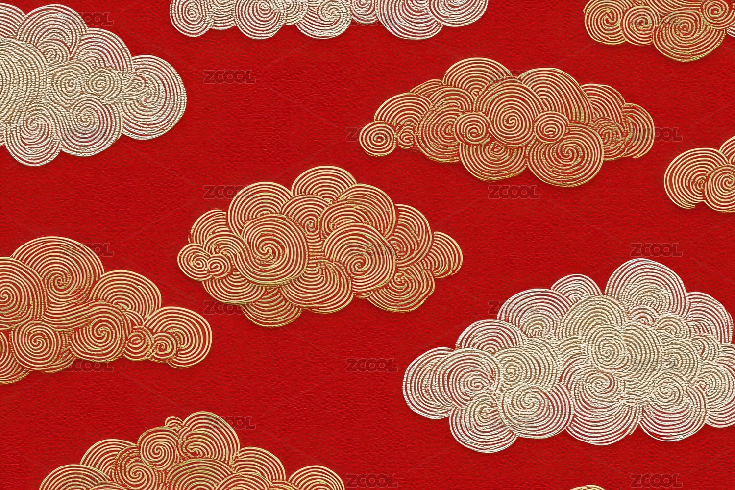 红色背景上的金色云纹图案