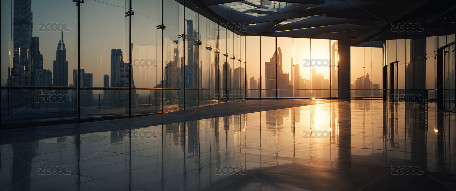城市天际线玻璃厅内景