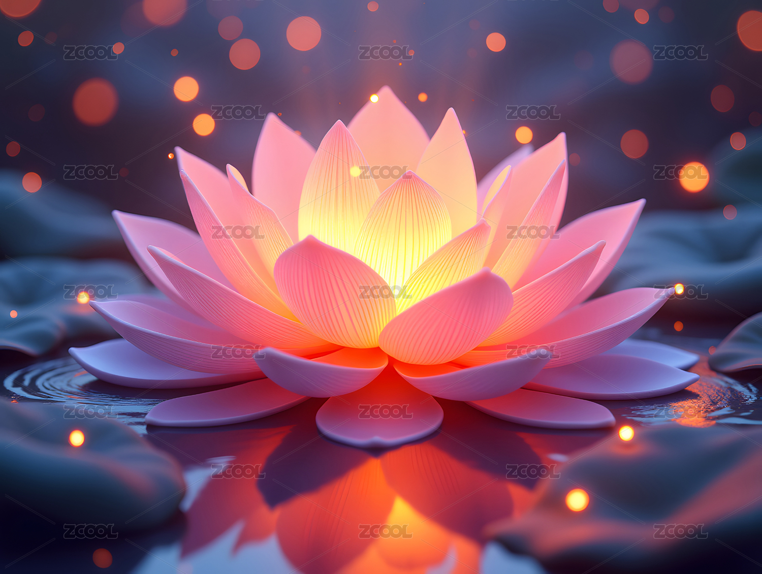 发光的荷花三维渲染场景插图