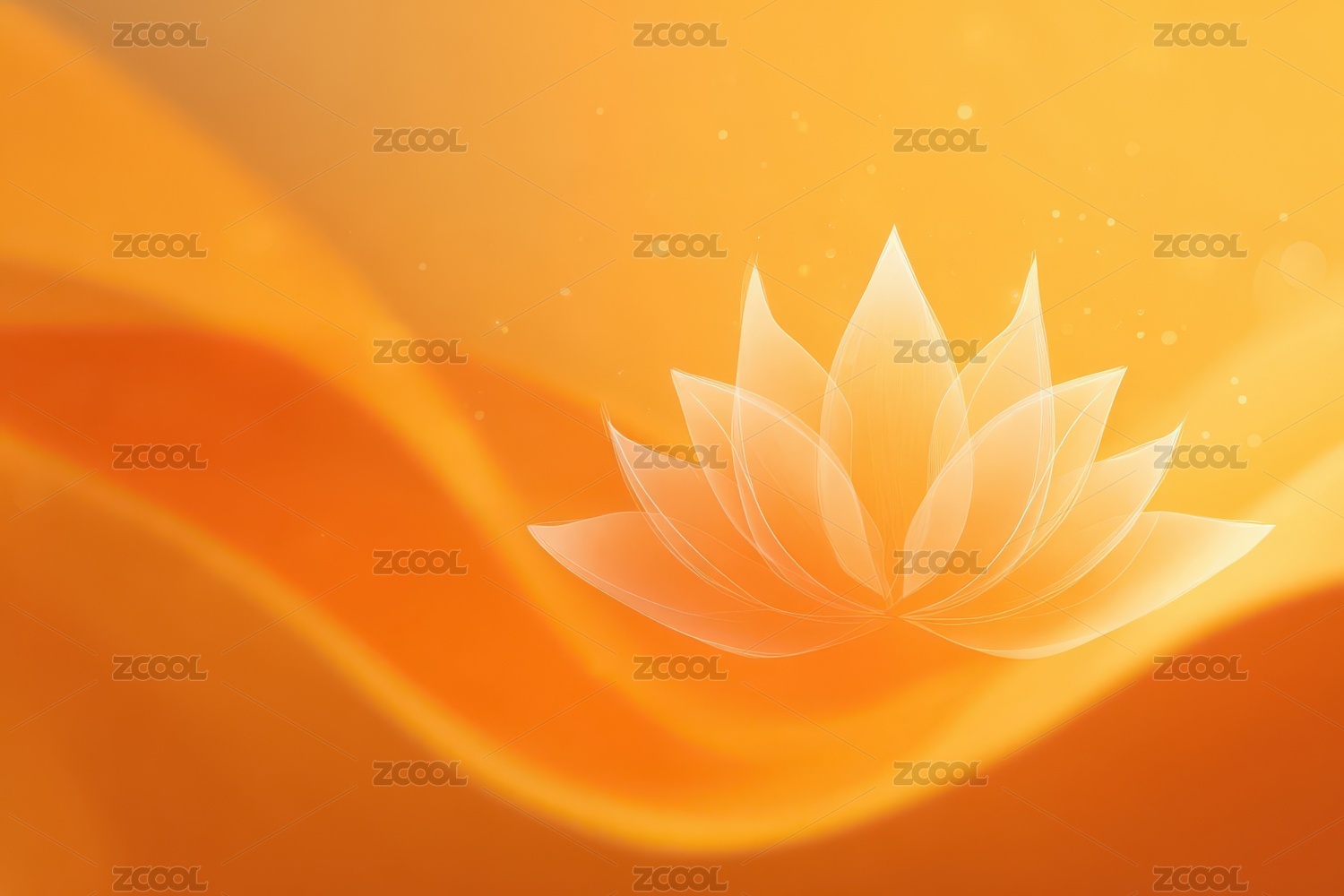 橙色莲花在光晕背景中绽放的唯美画面