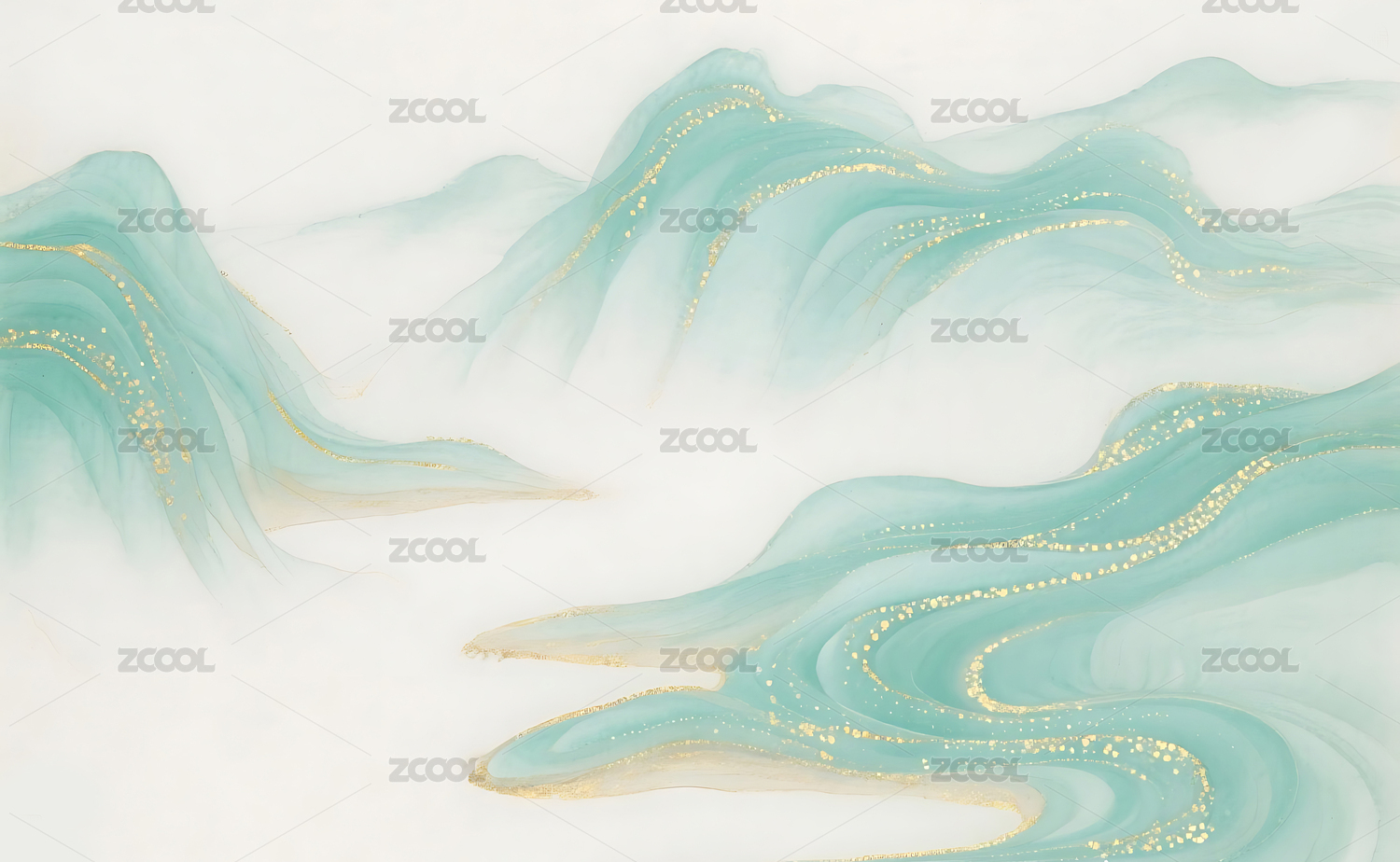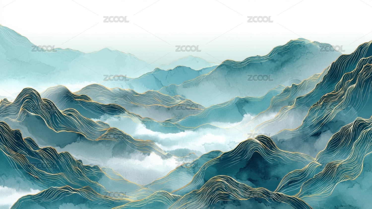 青绿山水金线新中式背景