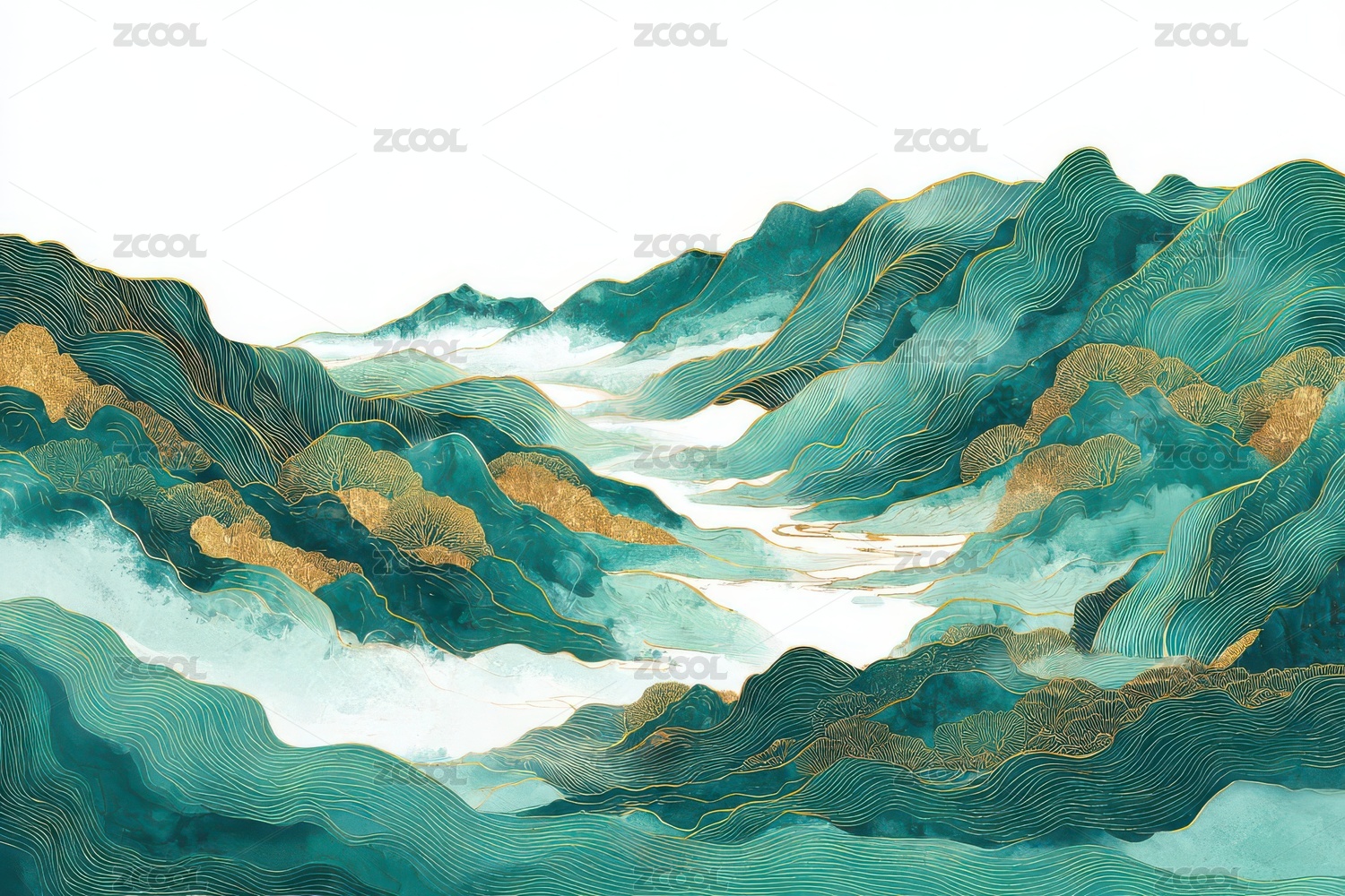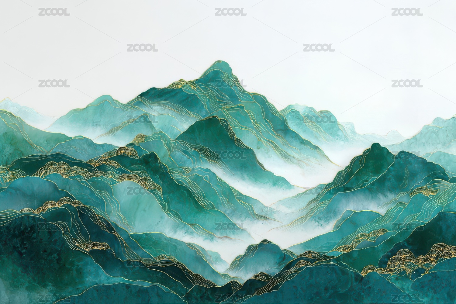青山,金线,水墨,层峦,云雾,意境,树木,绿水,雅致,古典