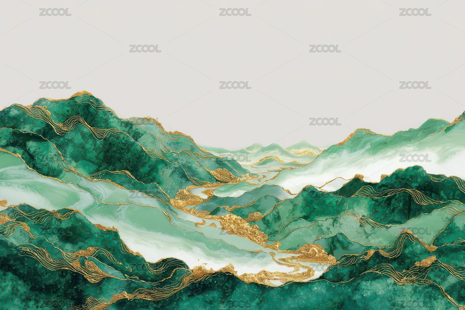翠绿山水金线流纹艺术画