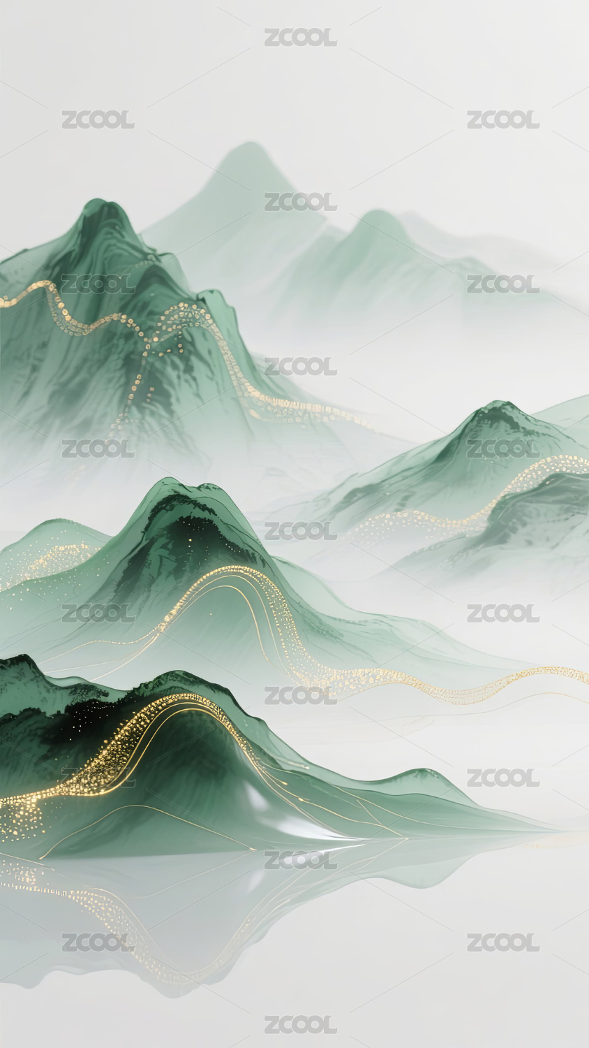 青绿山水流动金线的诗意画卷