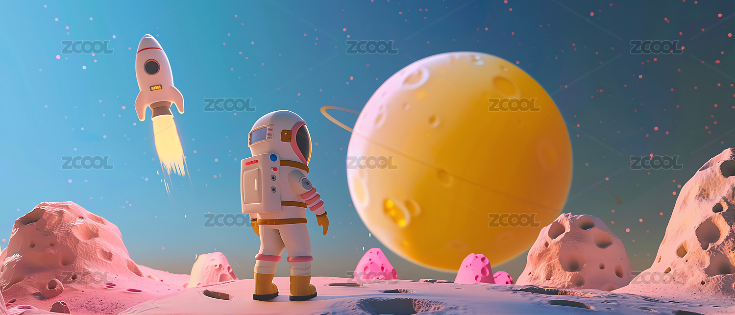 可爱的宇航员和火箭 3D 模型行星糖果