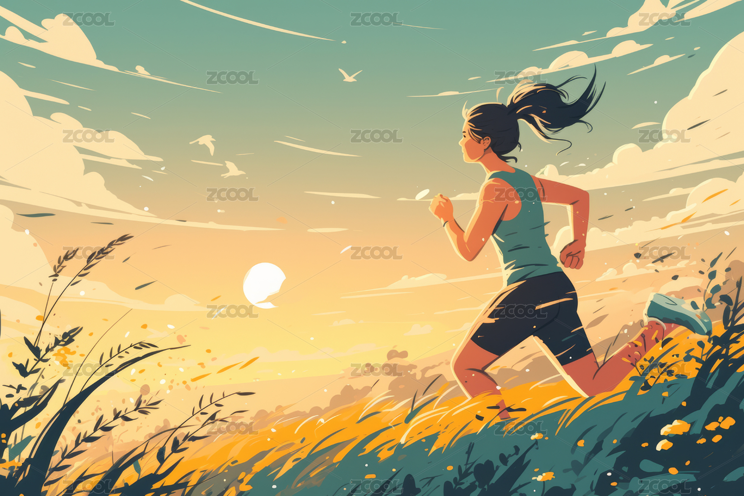 女孩,插画,壁纸,墙纸,旅行,运动,跑步,有氧运动,晨跑