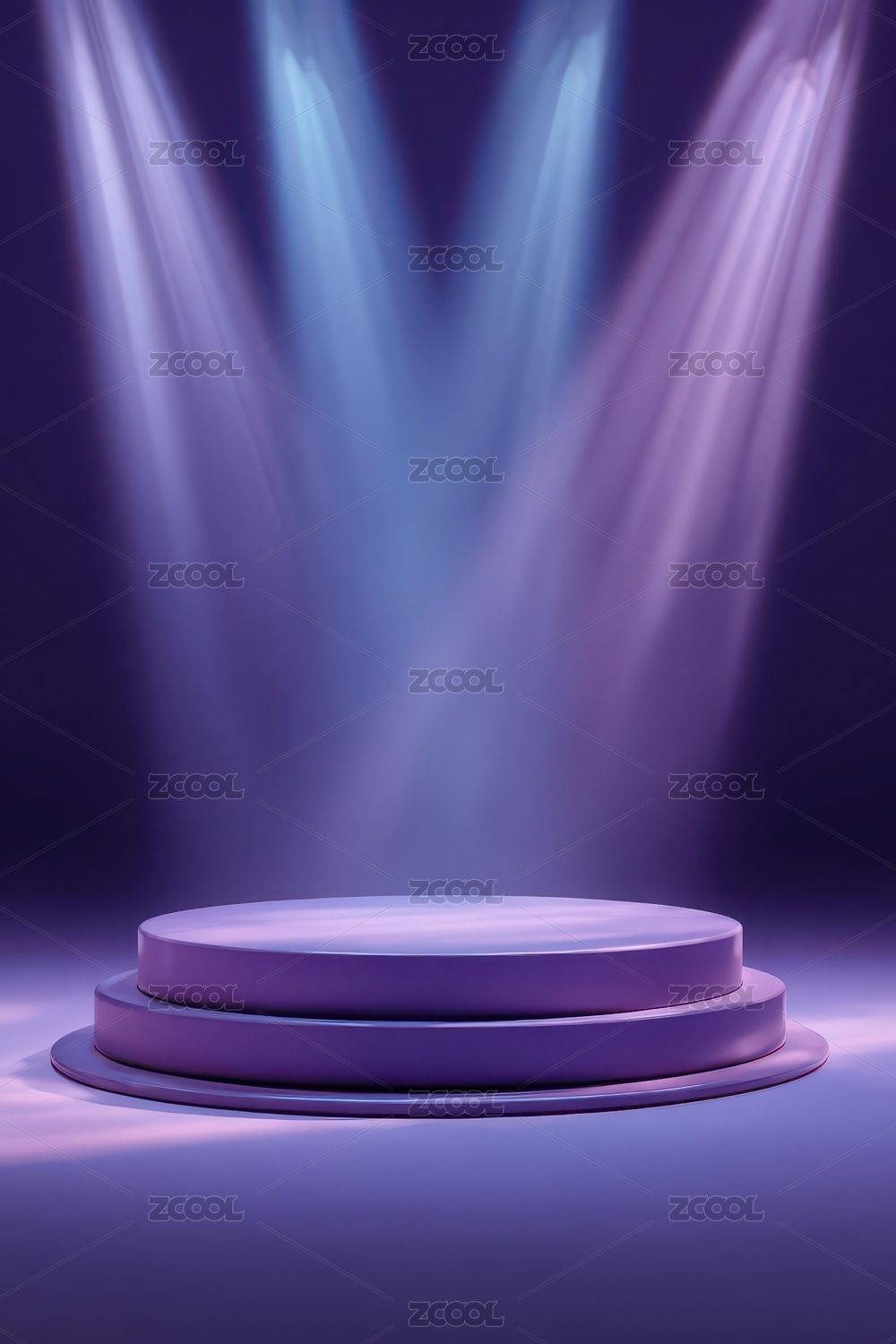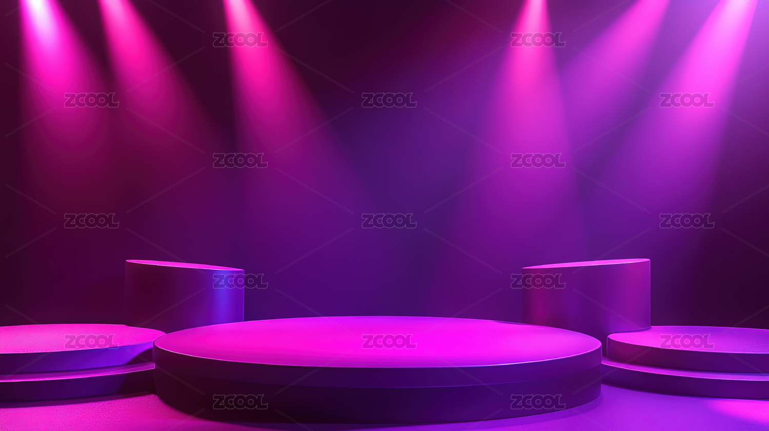 紫色聚光灯下的三层圆形展台
