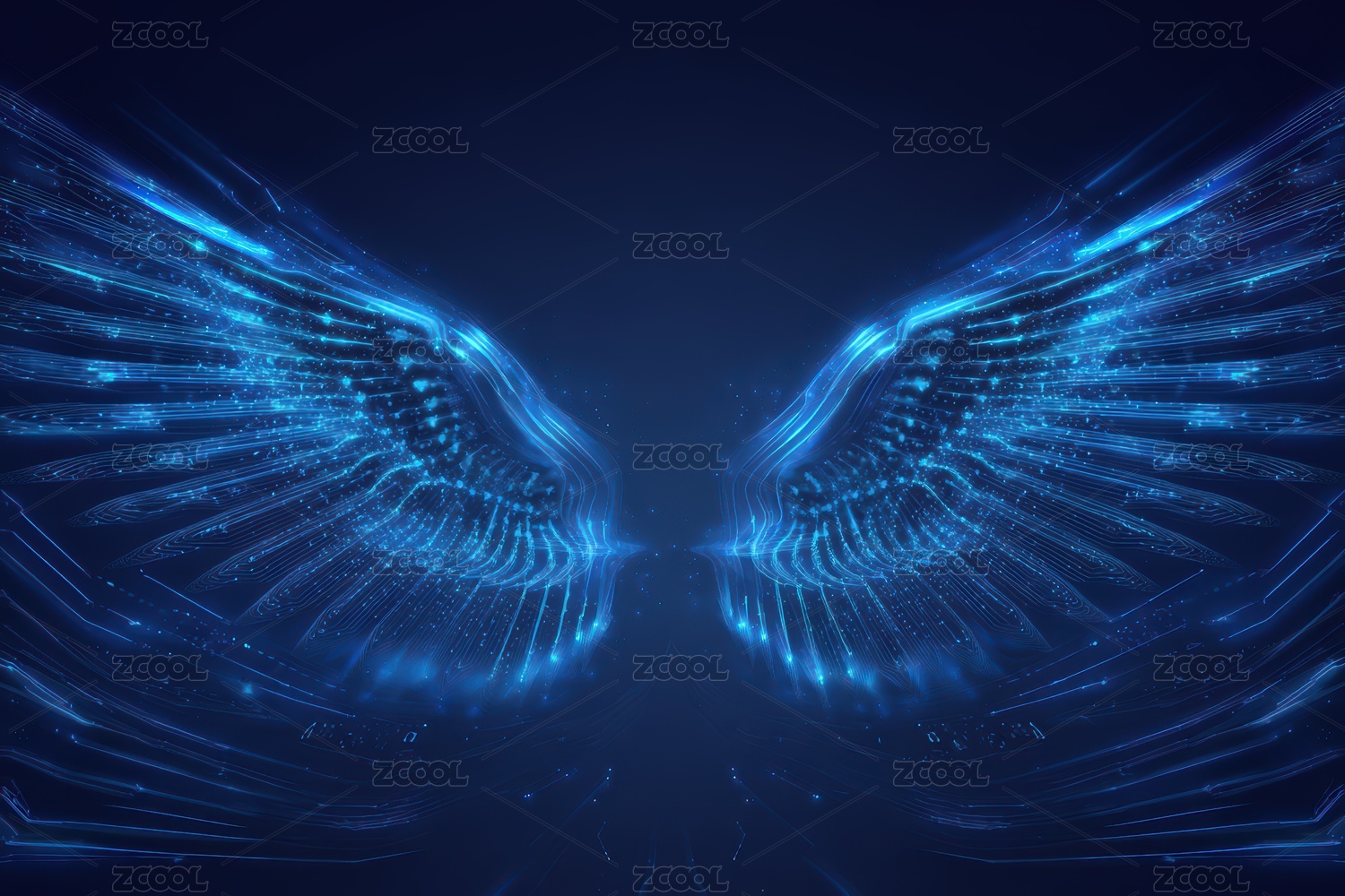 蓝色光点构成的抽象双翼