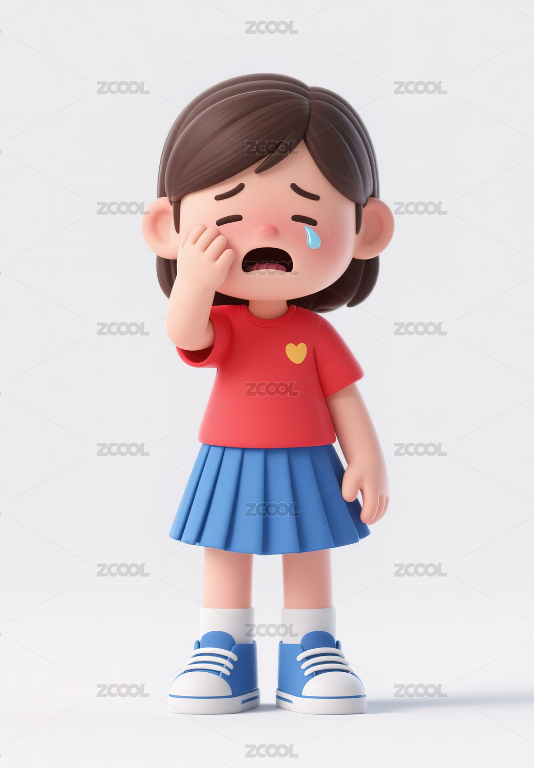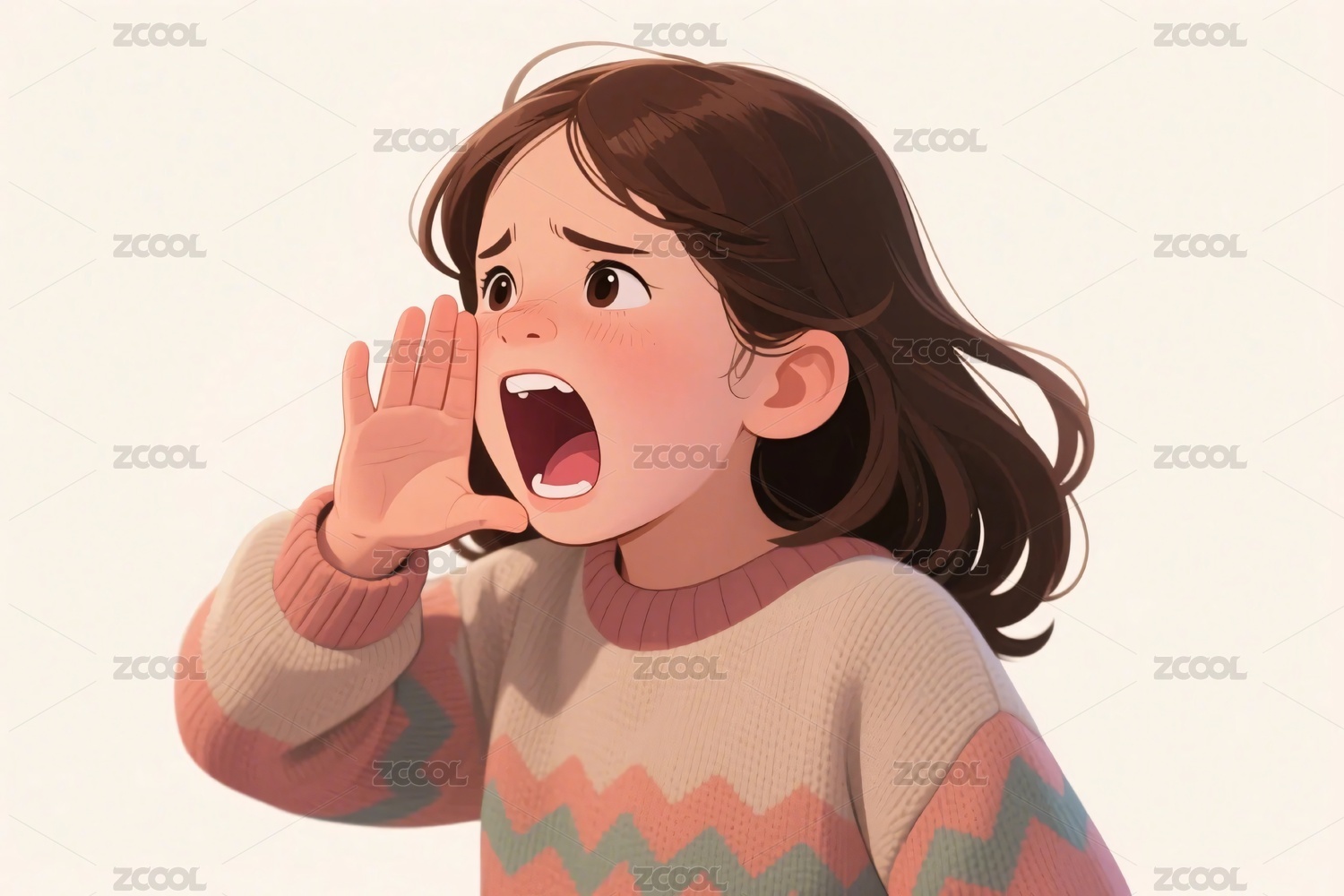 小女孩,哭泣,挥手,条纹毛衣,卡通,插画,矢量,儿童,情感,家人