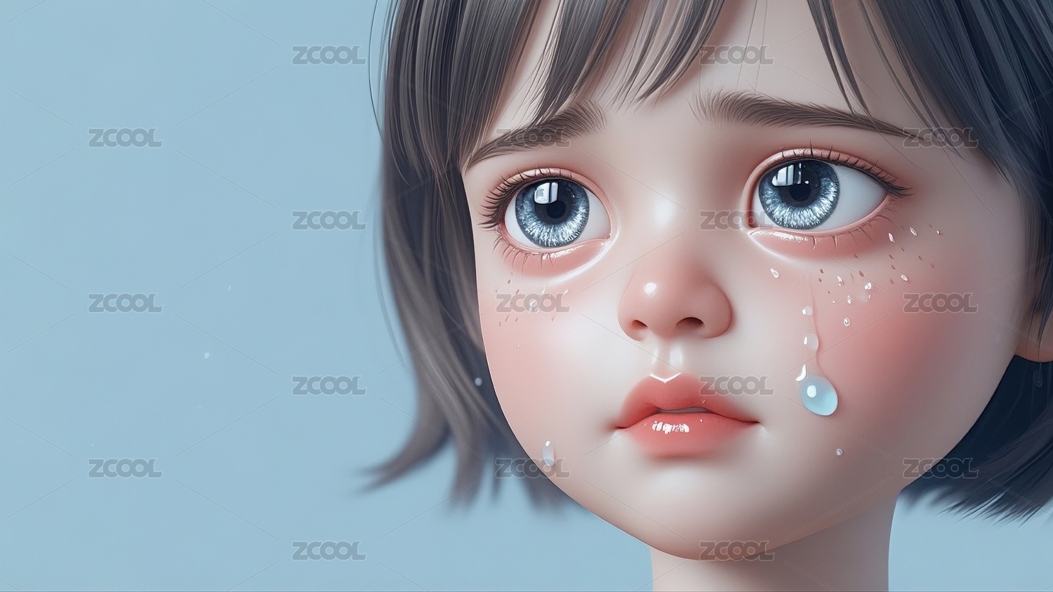 粉色背景前捂着眼睛哭泣的亚洲小女孩