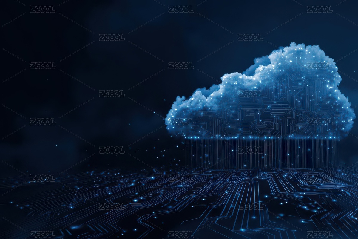 科技,蓝色,数字,光点,网络,数据,电路,连接,云朵,雨线