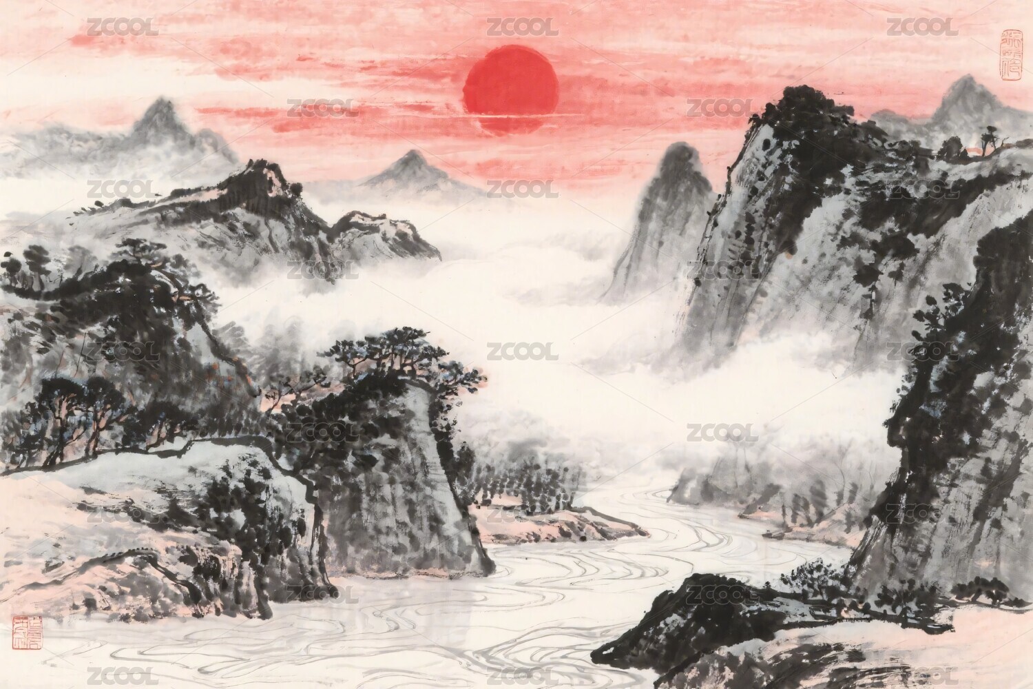 山水,国画,山水画,传统,水墨,中国风,山水意境,水墨山水,插画,背景