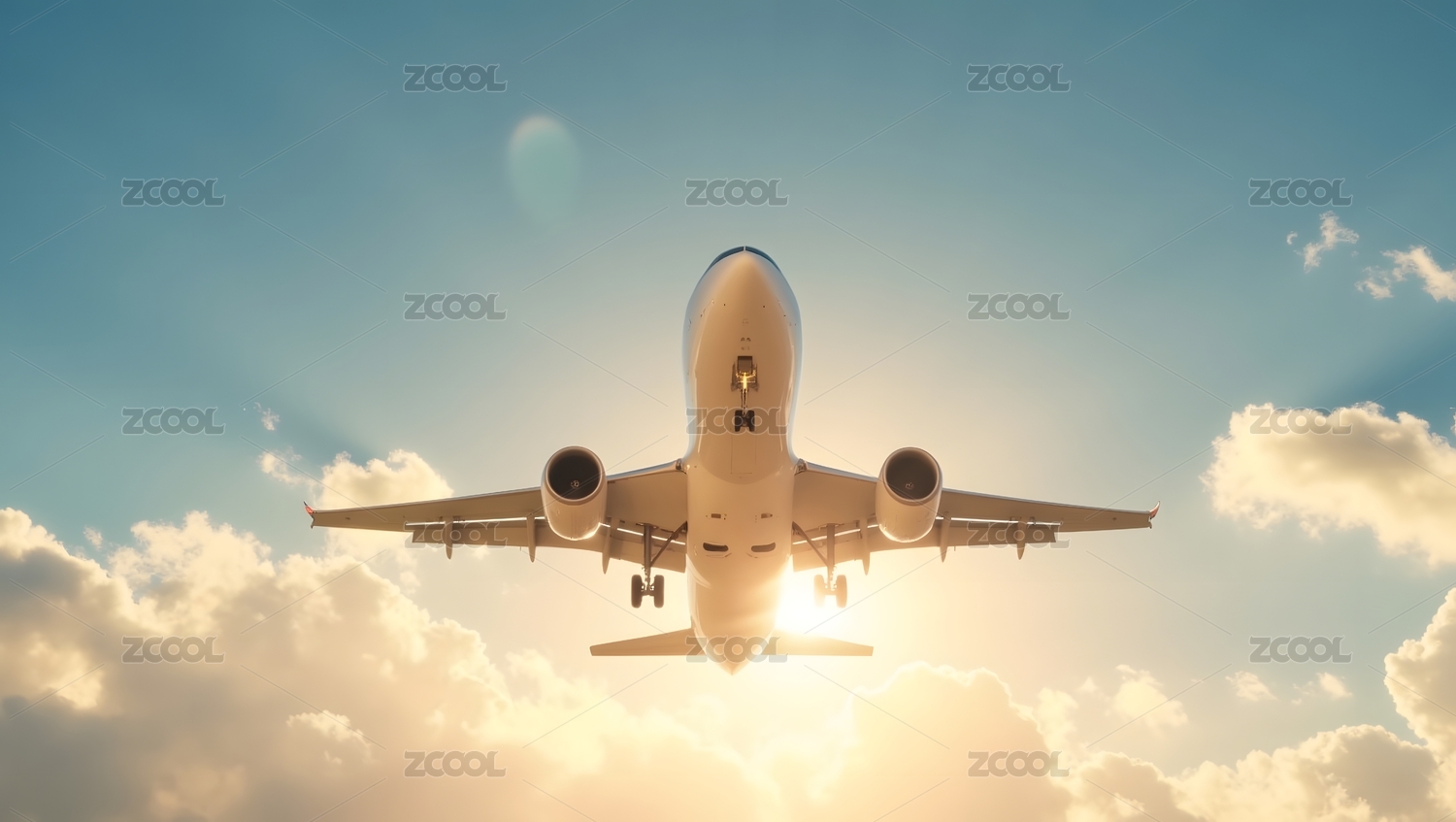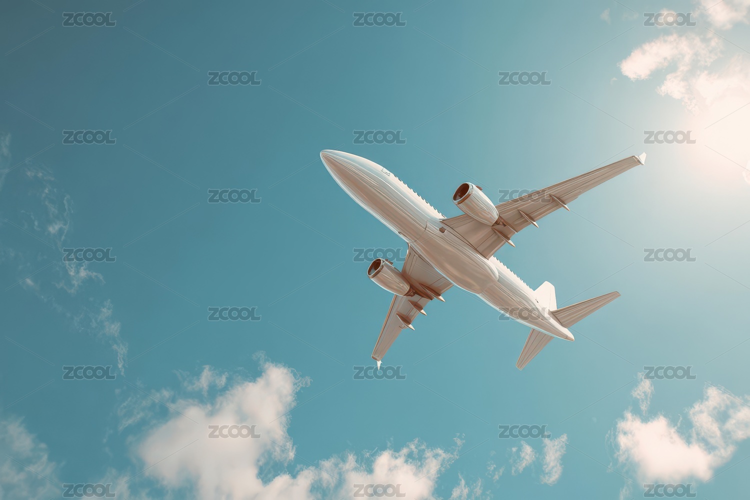 亚洲夏季商用客机飞行在美丽晴朗的天空