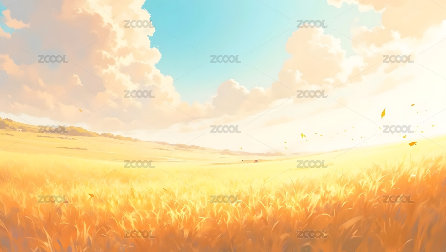 金黄麦田与飘落的叶子