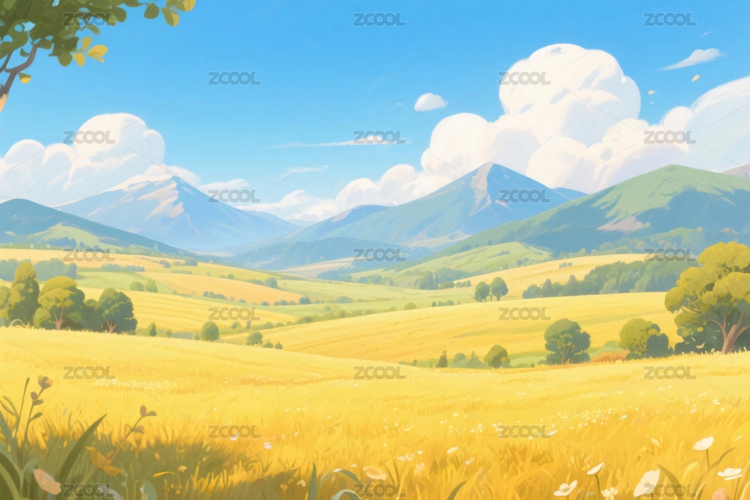 田园风景插画背景