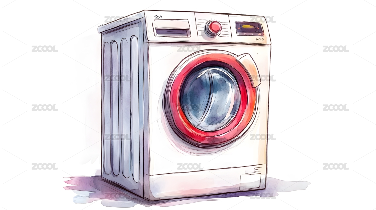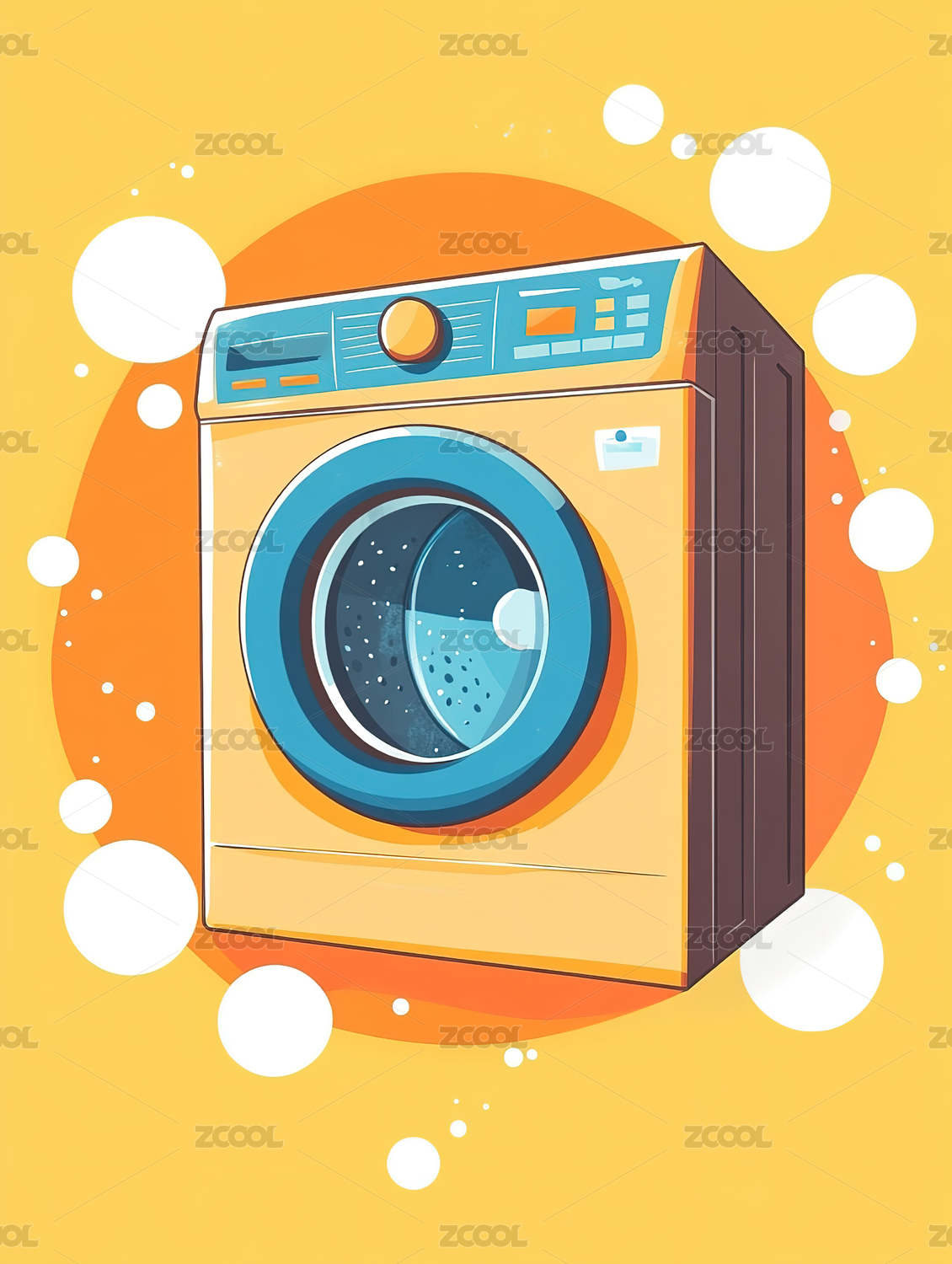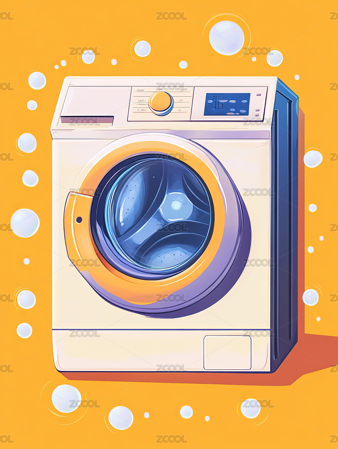 洗衣机,洗衣液,卡通,插画,室内,场景,家电,清洁,风格,白色