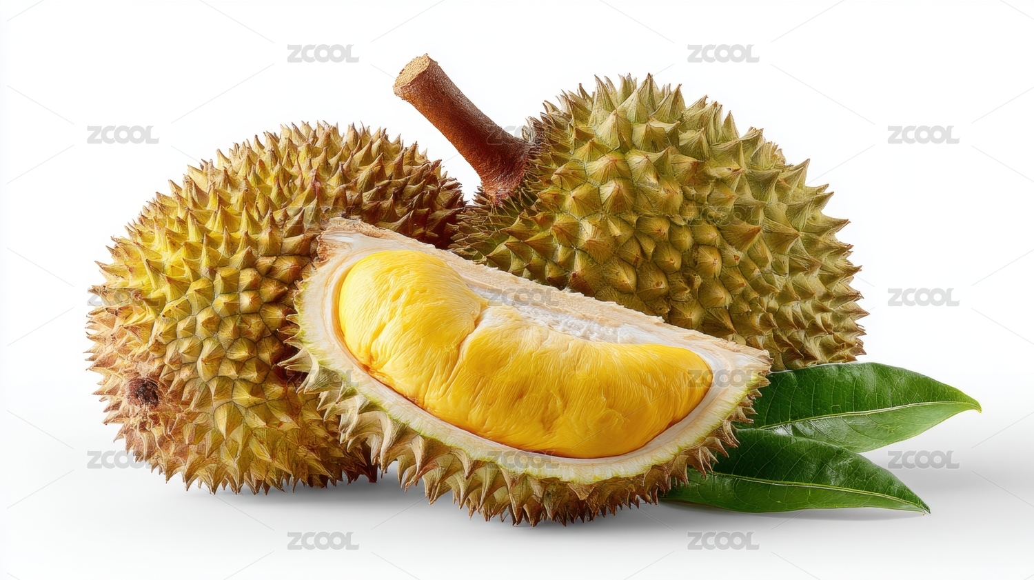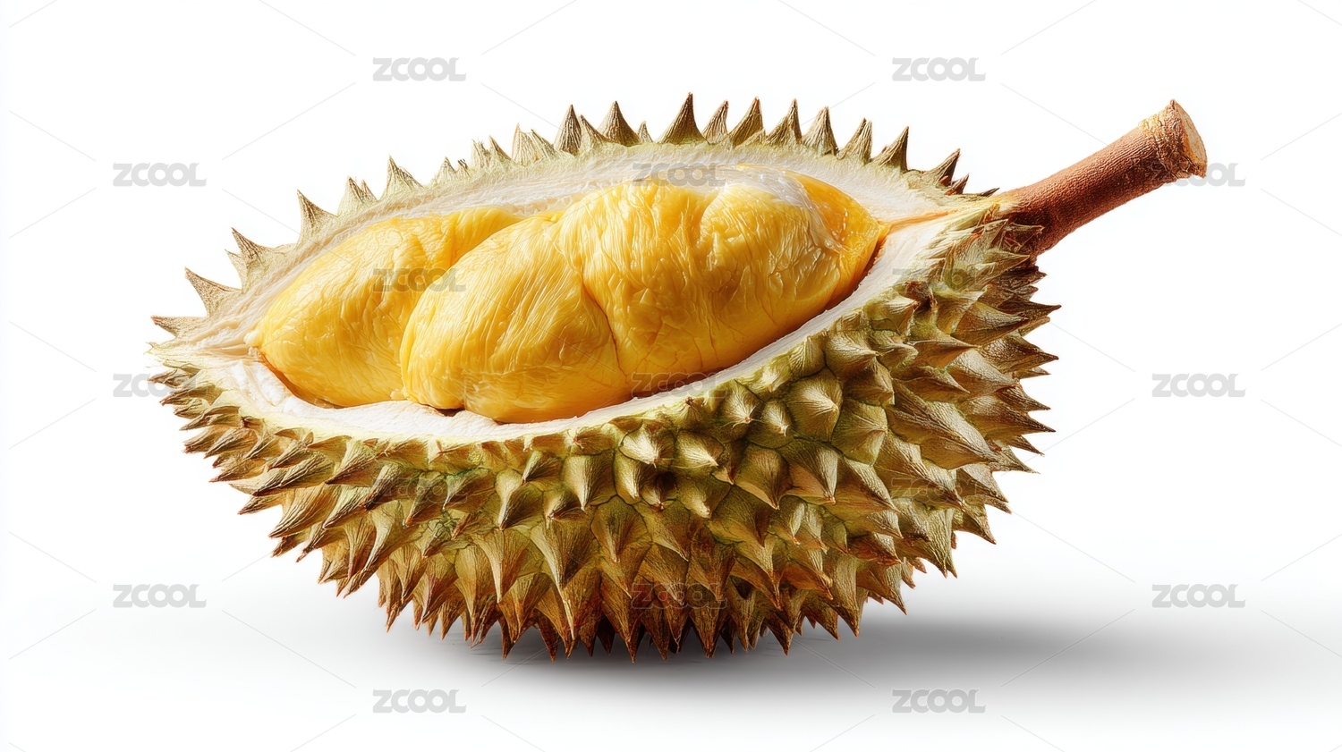 榴莲,果肉,黄色,纹理,果柄,果壳,尖刺,剖开,绘画感,艺术化