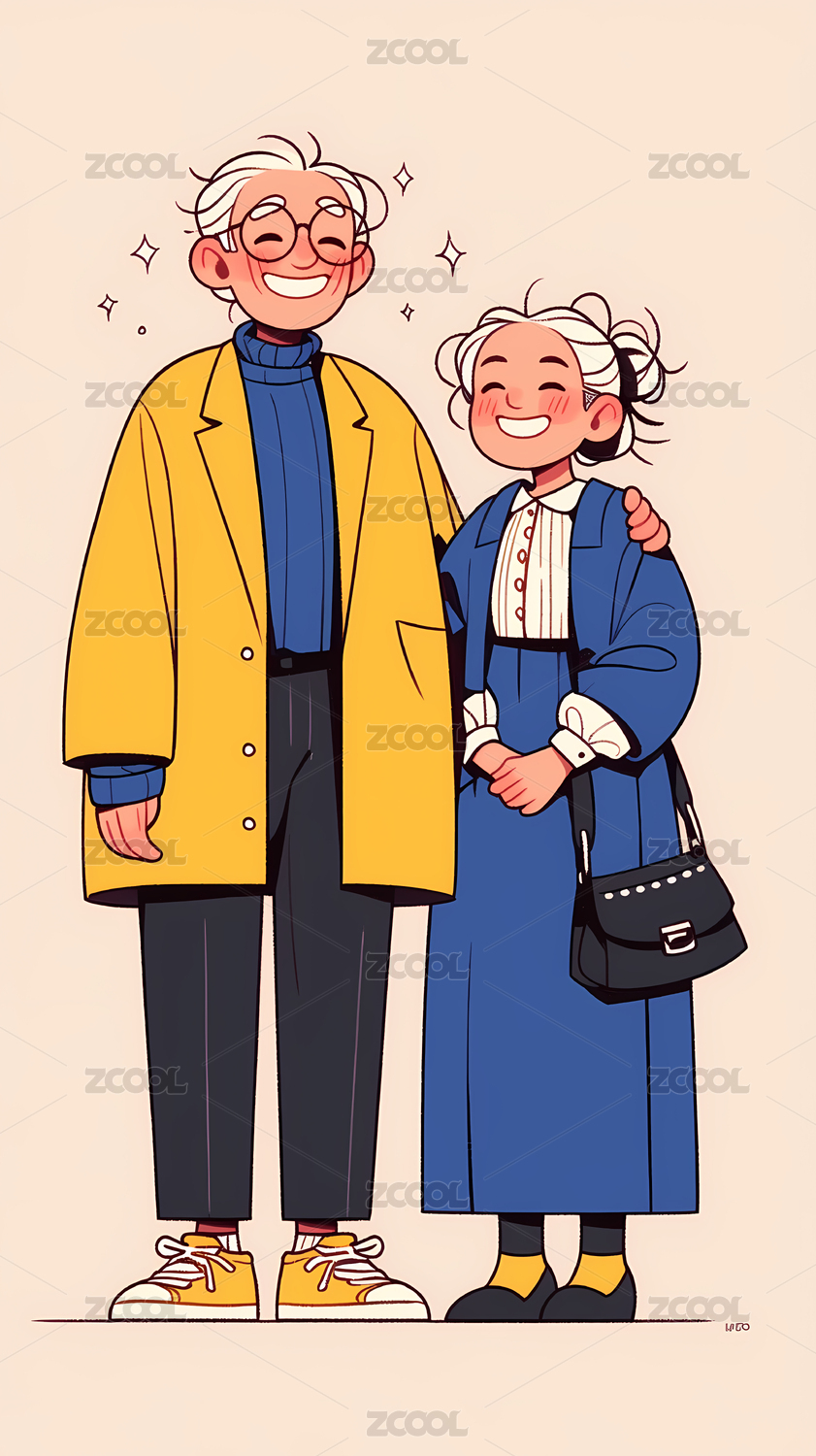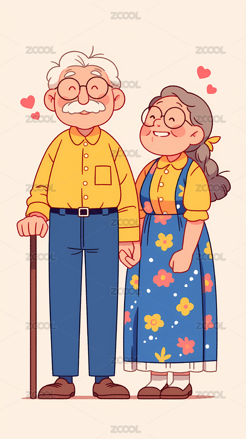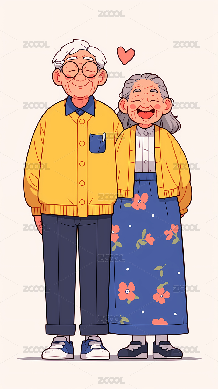 卡通爷爷奶奶插画