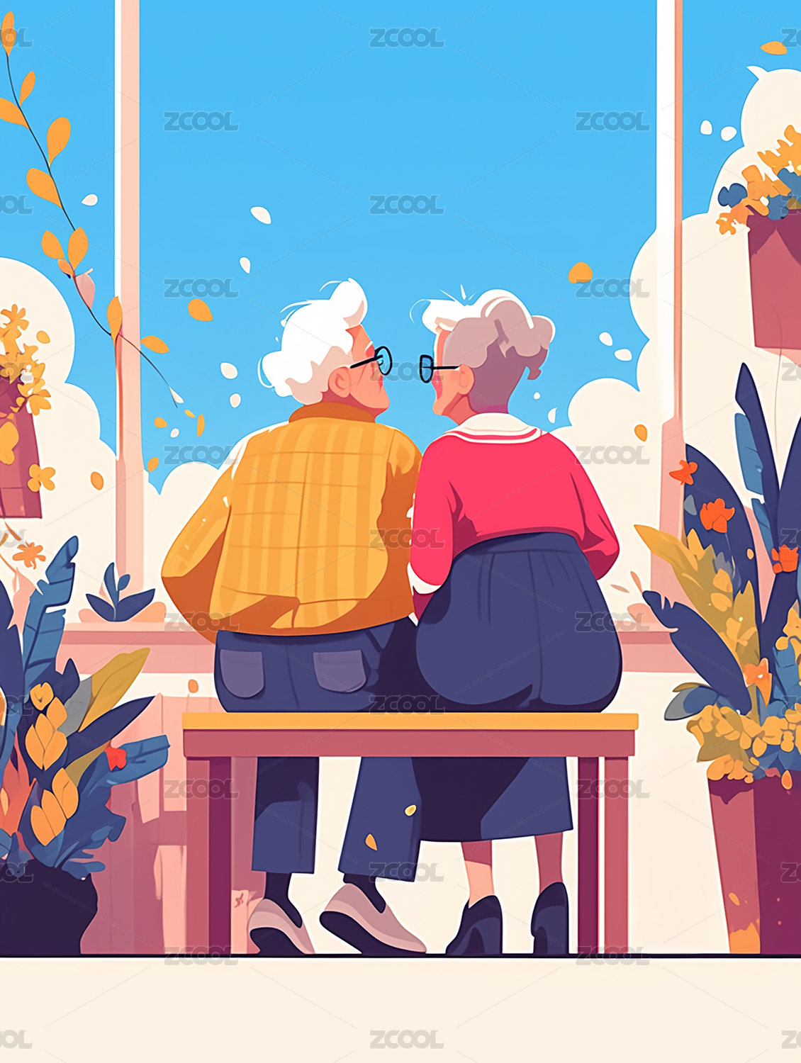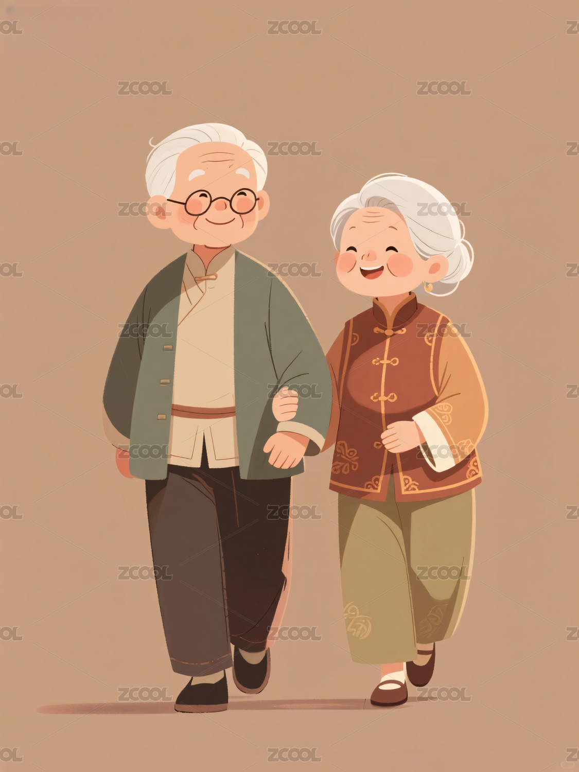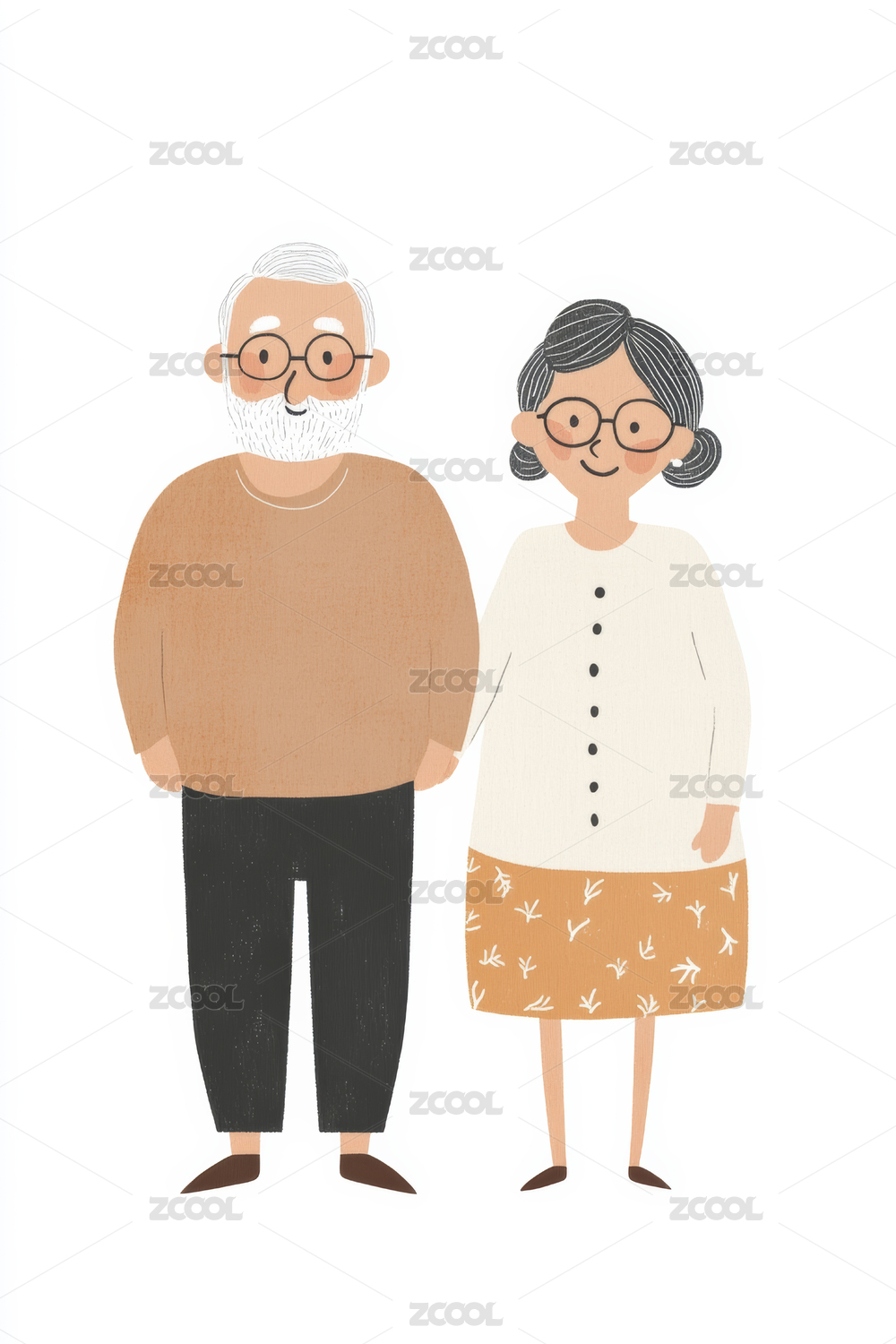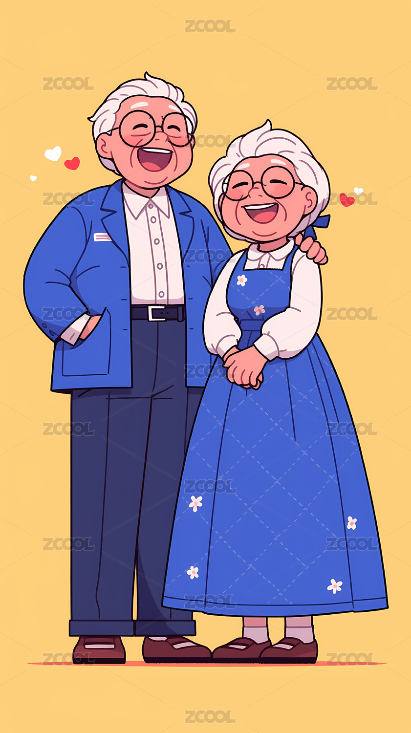 卡通爷爷奶奶插画