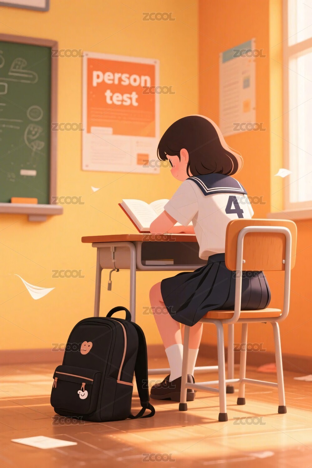 学生,书本,教室,黑板,课桌,书包,学习,课堂,插画,动漫