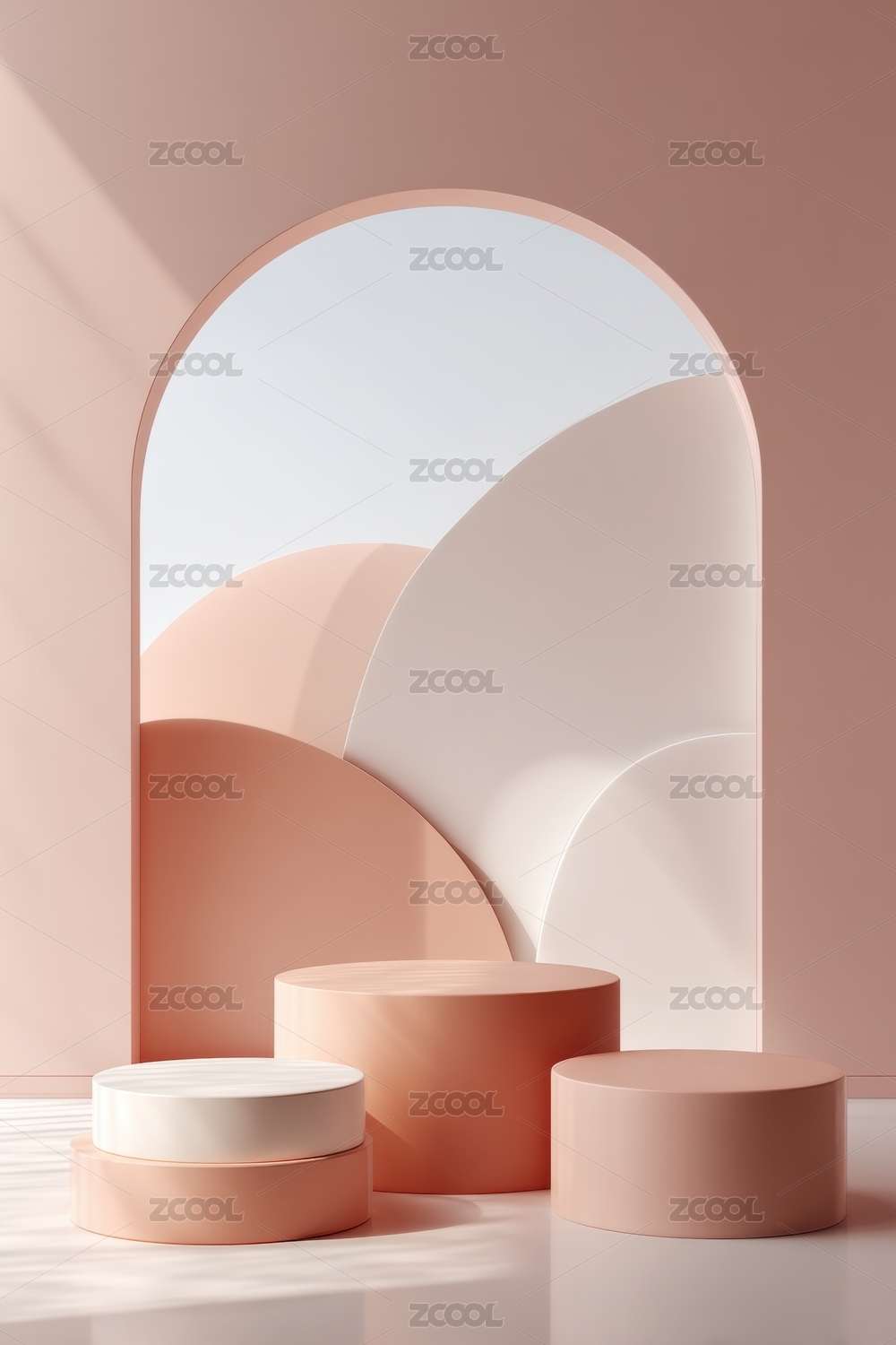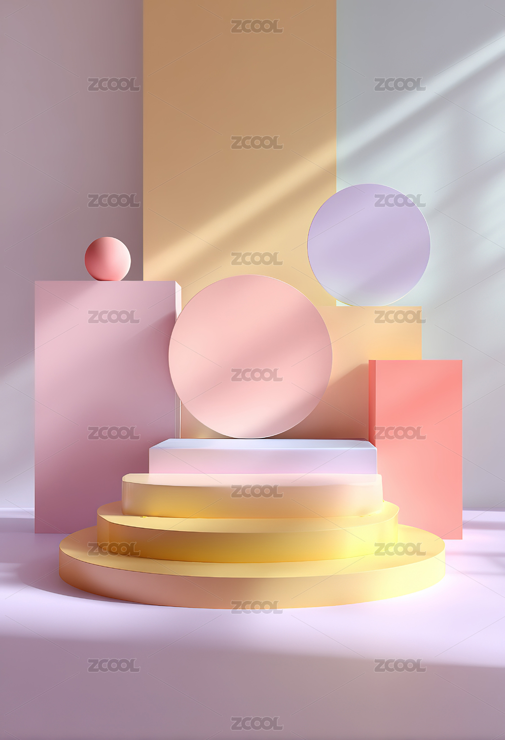 柔和色块几何展示静物场景