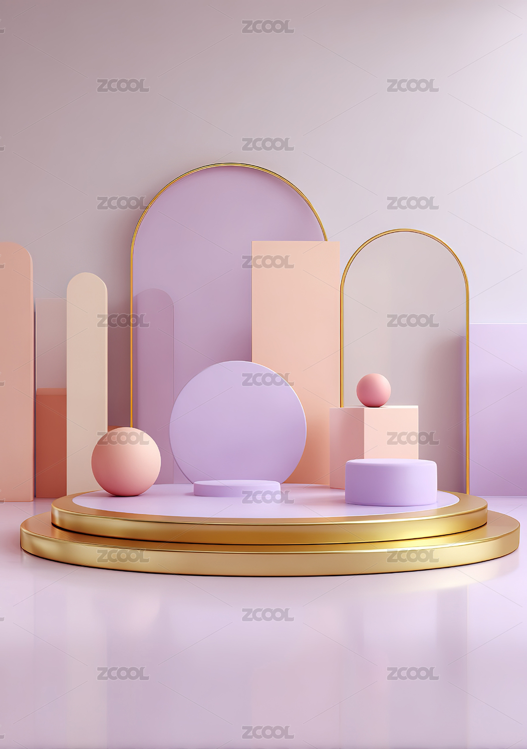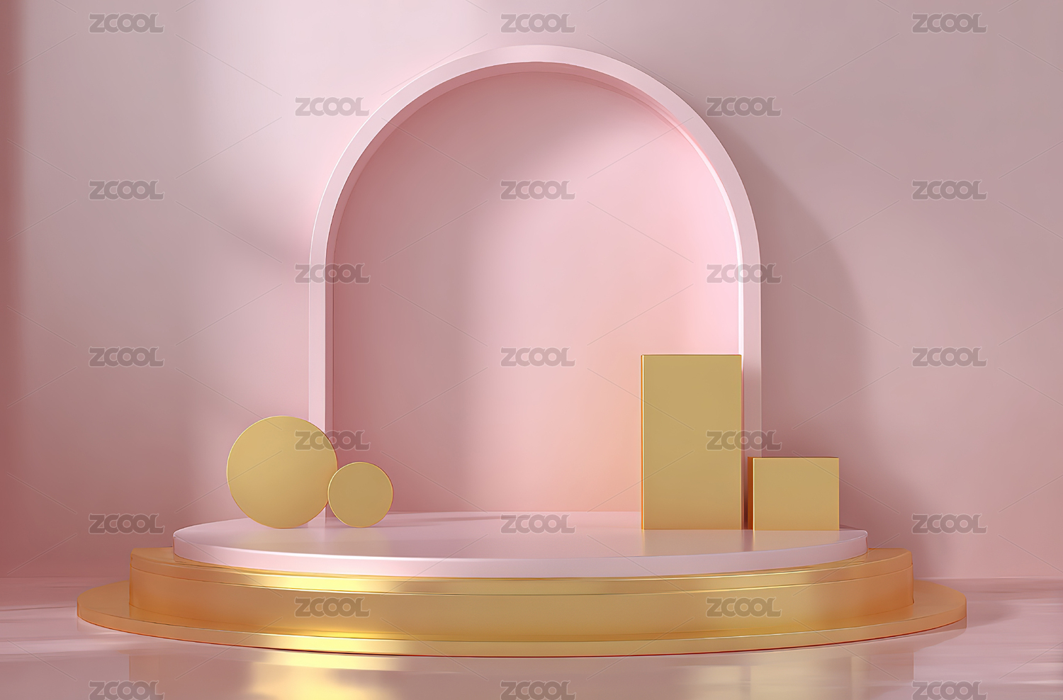 粉色与金色几何造型的现代展示场景