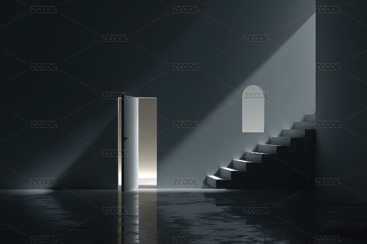光影,纹理,空间,抽象,墙壁,几何,阶梯,拱门,门洞,冷调