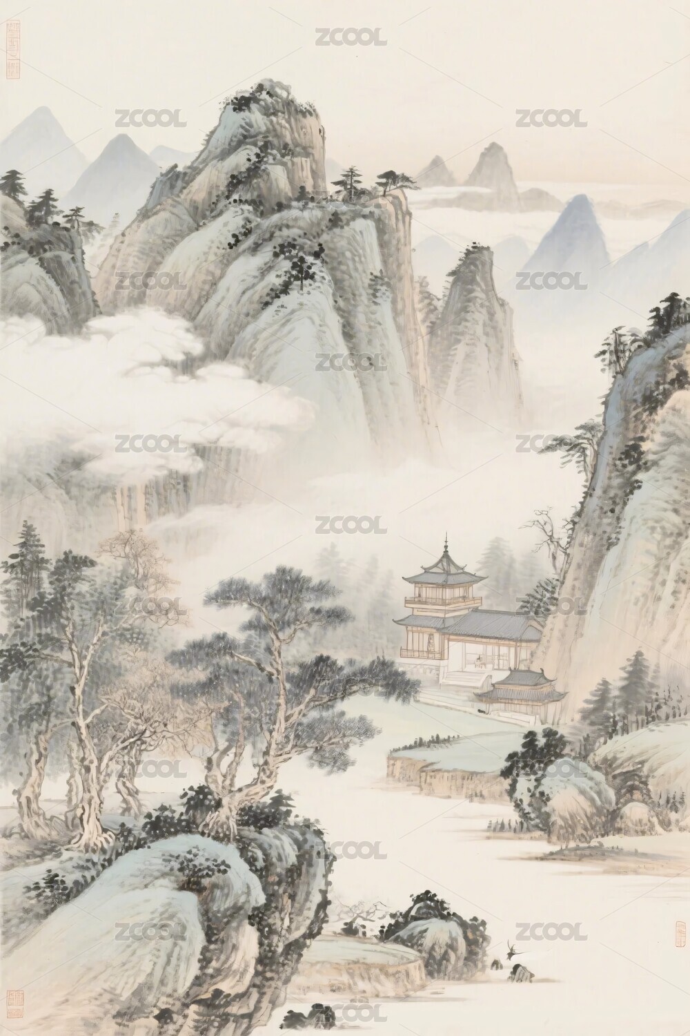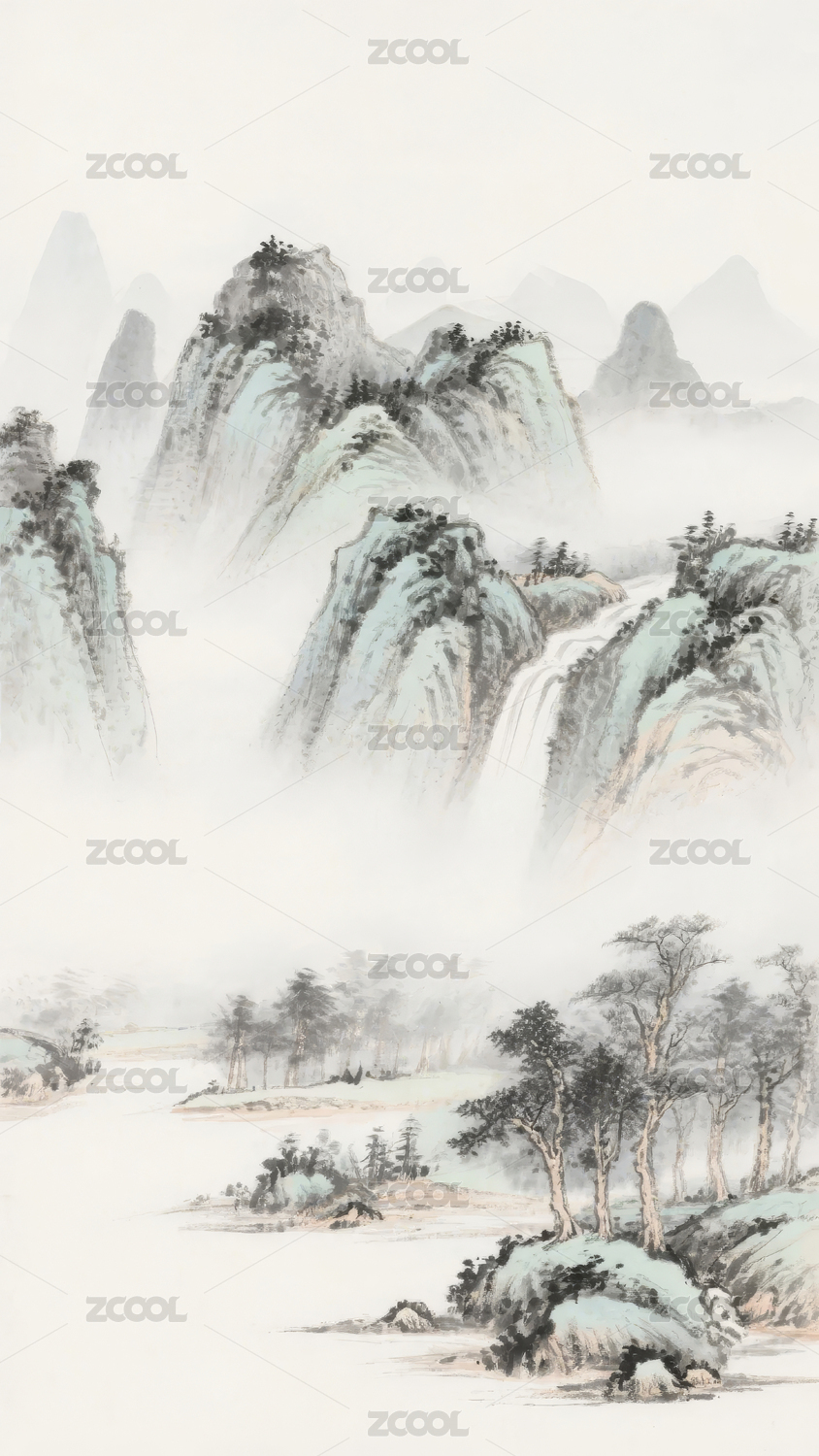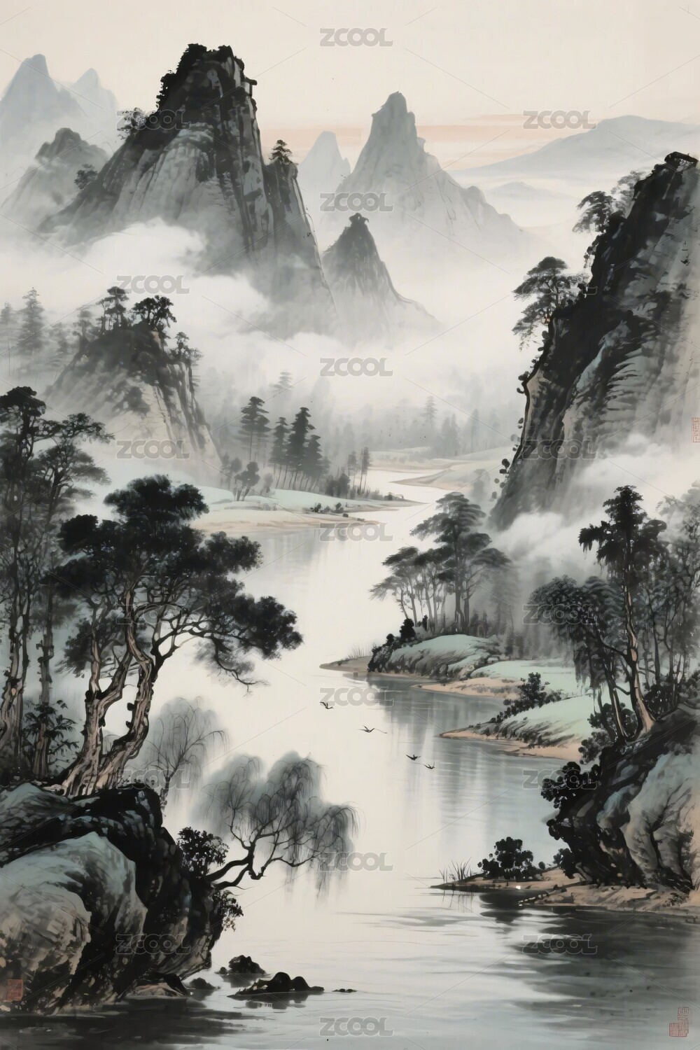 山水,水墨,中国画,山水画,云雾,河流,树木,国画,艺术,风景