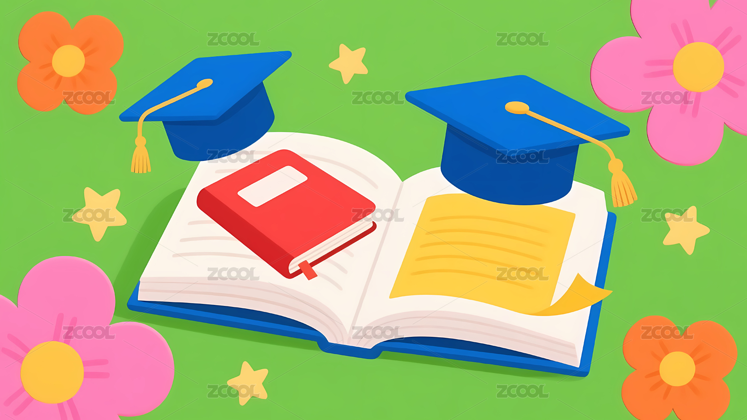 学士帽,毕业证书,校园,太阳,人物,学生,毕业,插画,矢量,背景