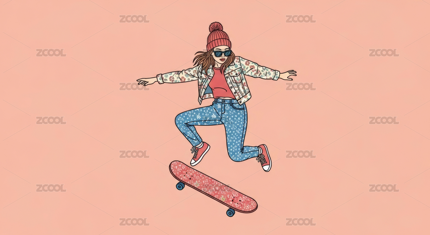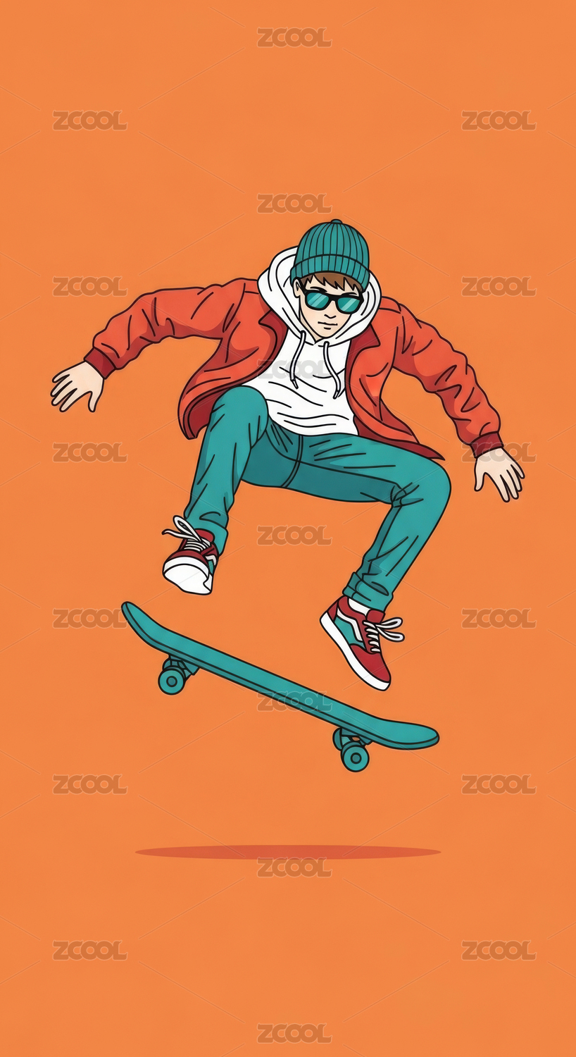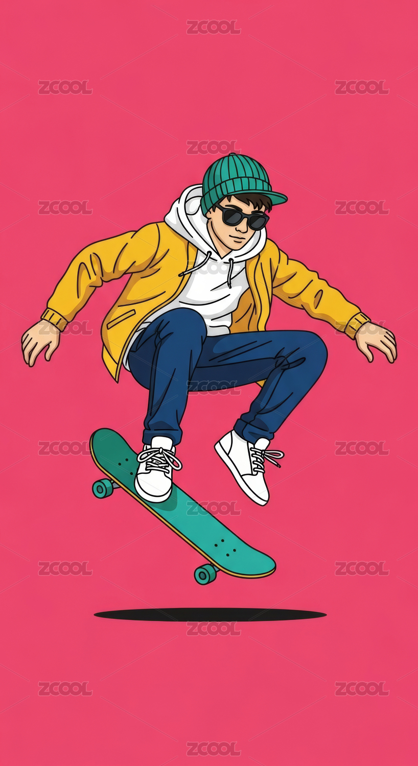 卡通,潮流,运动裤,运动鞋,插画,时尚,背景,街头,毛线帽,墨镜