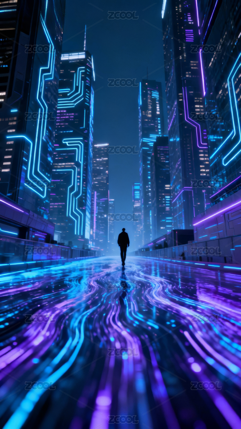 霓虹数据化虚拟现实VR人工智能未来科技元