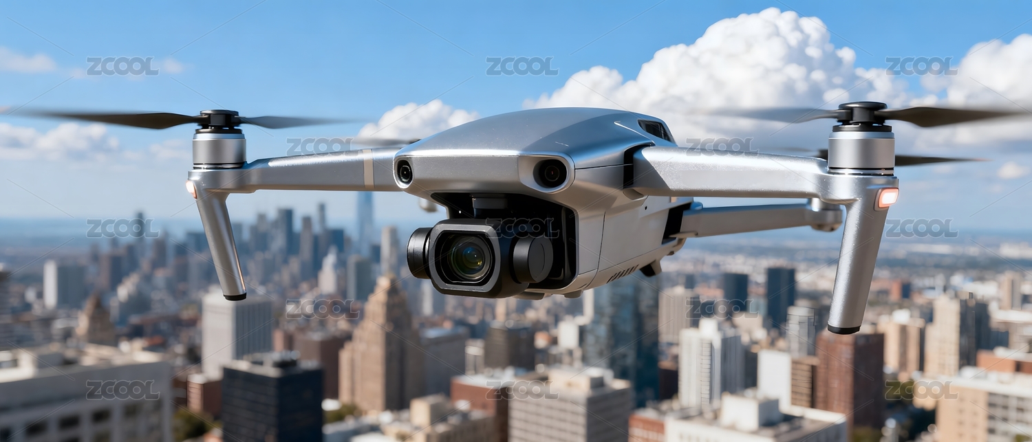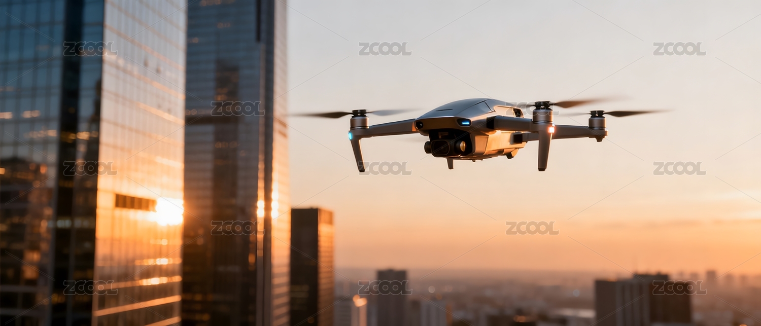 无人机高空飞行城市背景