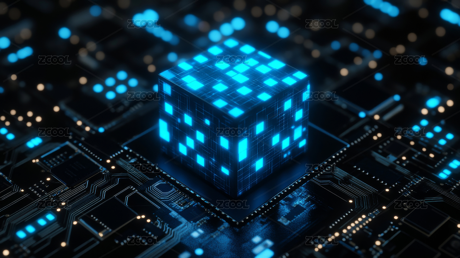 立方体,电路,蓝色,发光,科技,未来,抽象,图形,几何,电子