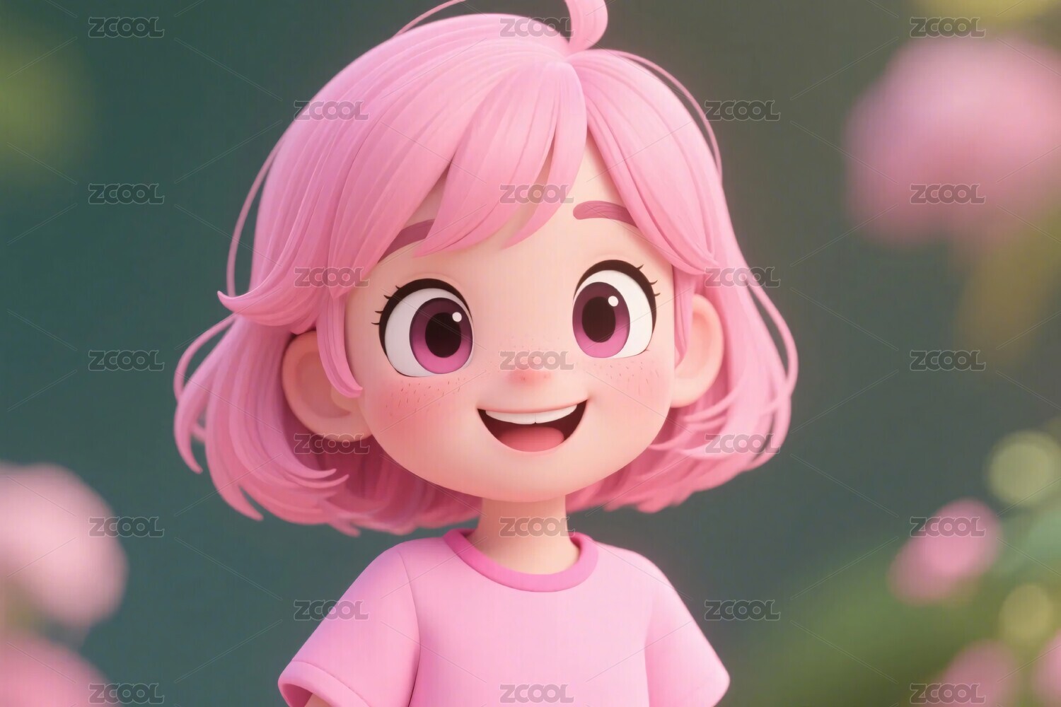 3D渲染的可爱卡通女孩穿着蓝色连帽衫