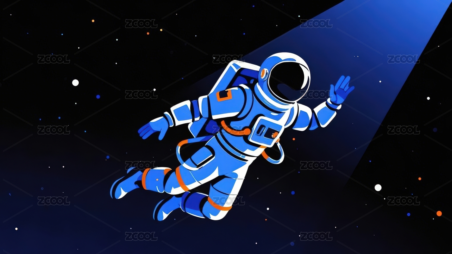 宇航员漂浮在梦幻蓝色星际卡通插画海报