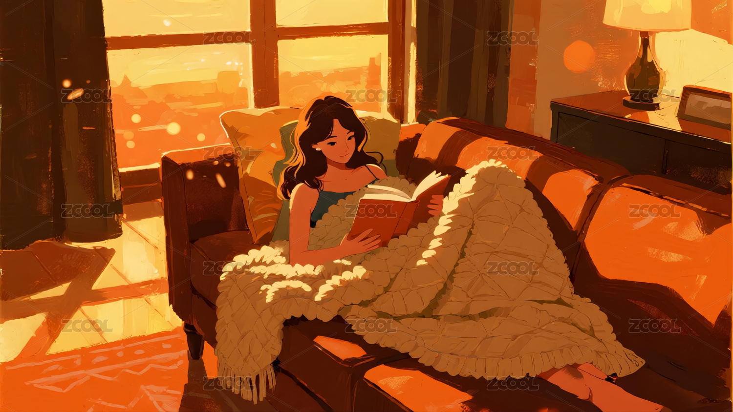插画,二次元,卡通,阳光,女孩,休闲,耳环,宁静,光线,坐着