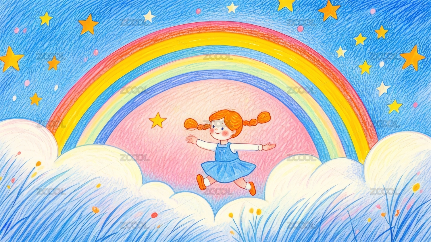 彩铅儿童治愈绘画扁平插画