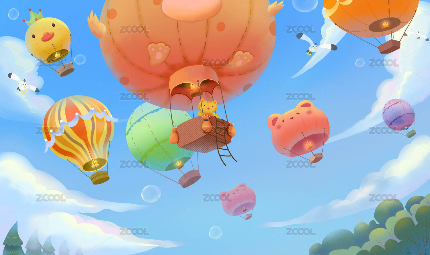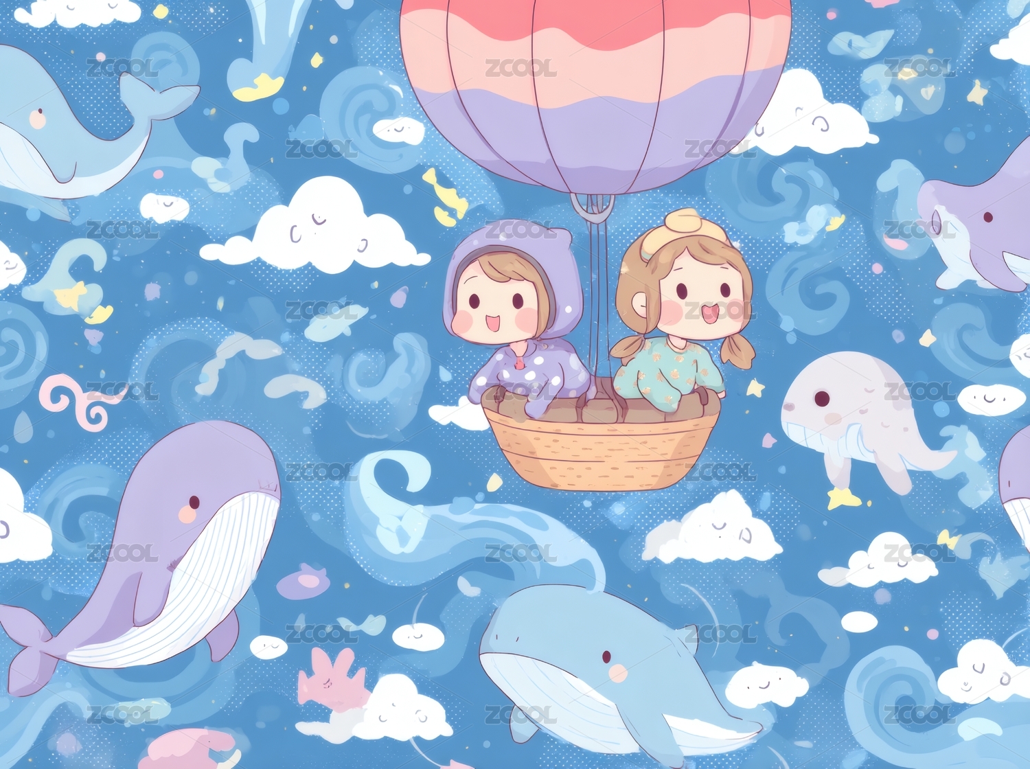 梦幻热气球女孩海洋之旅