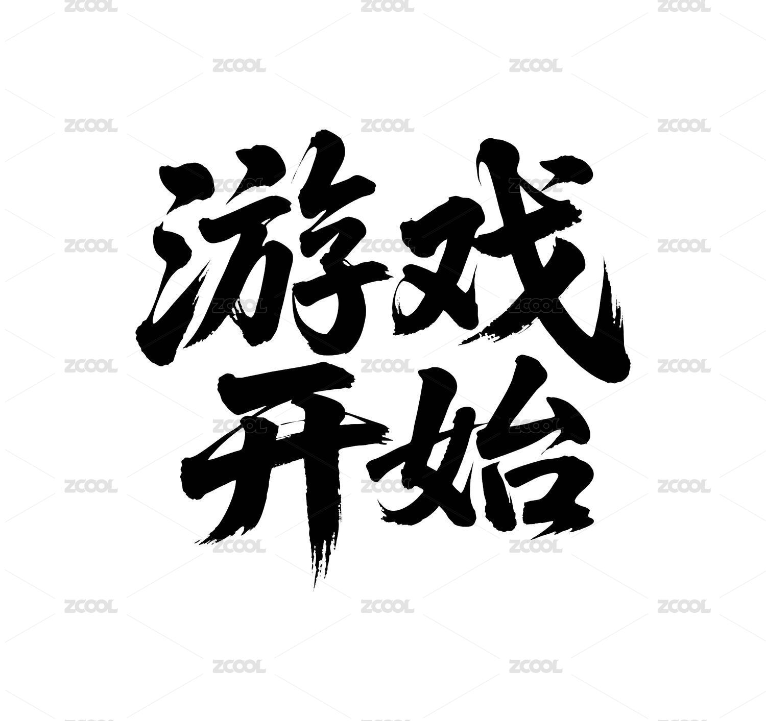 游戏开始矢量书法手写毛笔字
