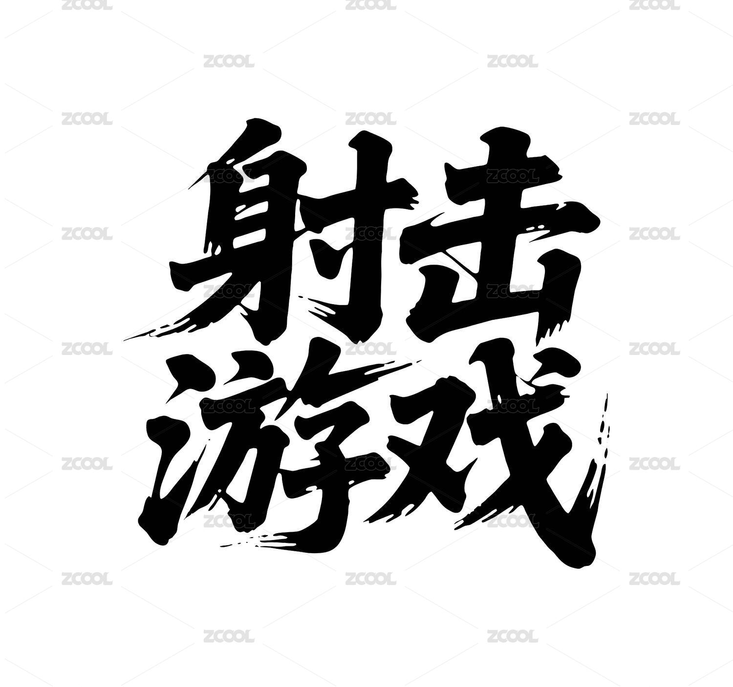 射击游戏矢量书法手写毛笔字
