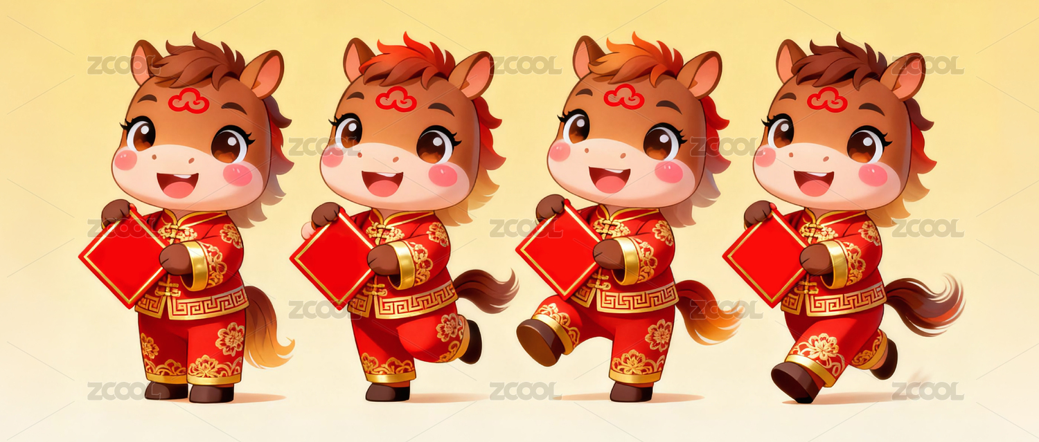国风十二生肖2026马年卡通吉祥物插画