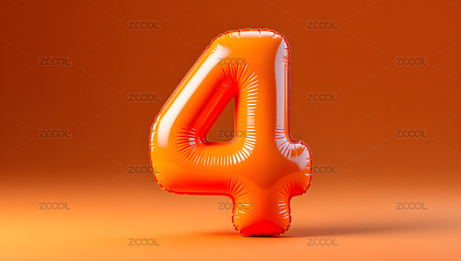 数字,1,倒计时,充气,塑料,橙色,现代,立体,细节,光泽