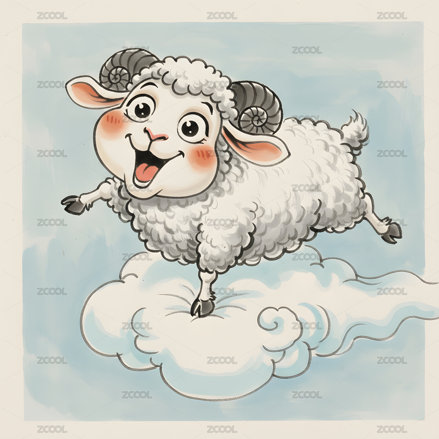 中国风,水墨,羊年,羊,动物,卡通,形象,生肖,家畜,平面