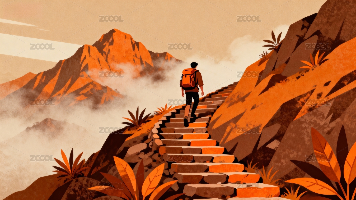爬山,攀登,登山,山顶,攀登者,人物,剪影,卡通,插画,云