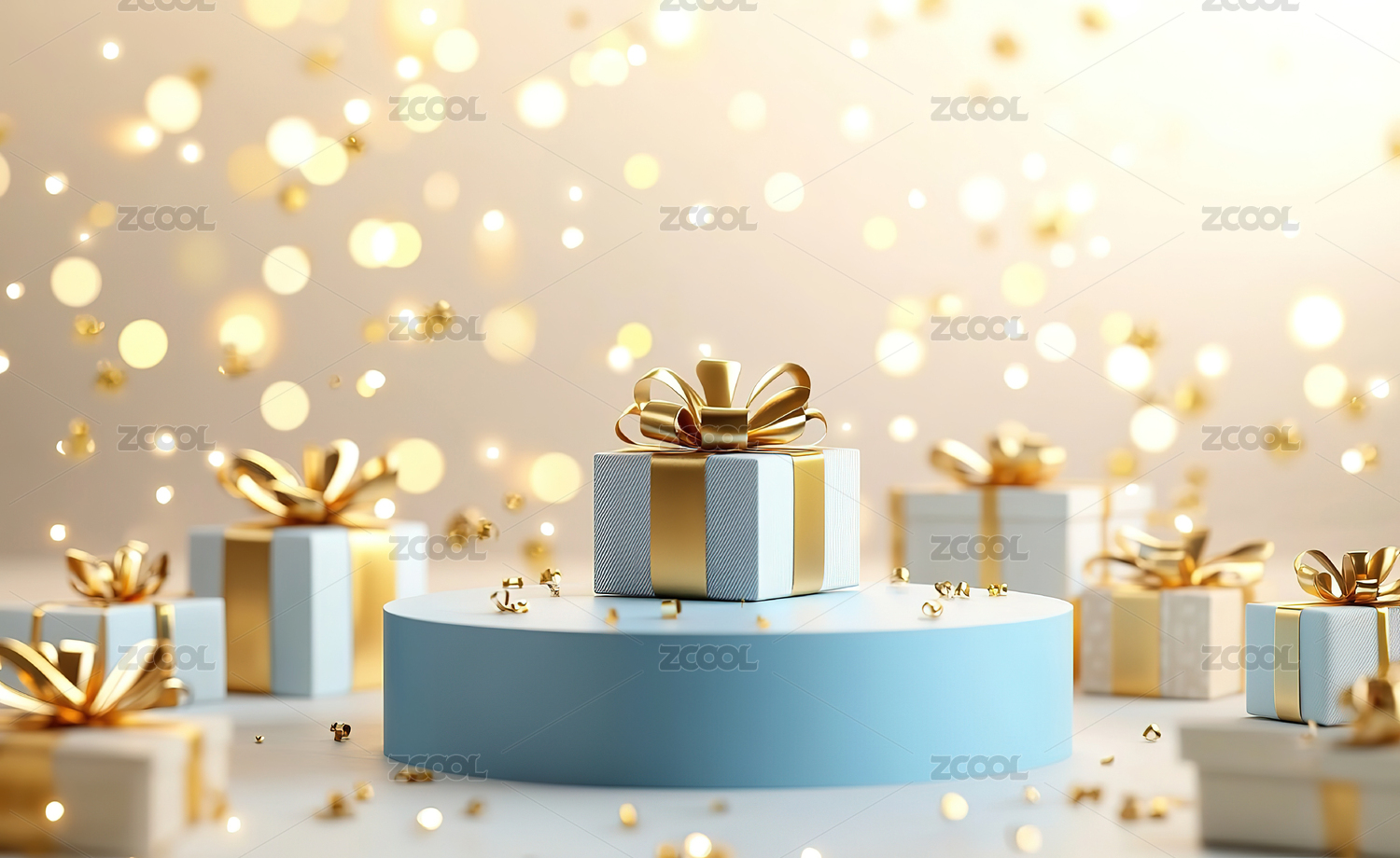 装饰着礼品盒的氛围感产品展台电子商务促销